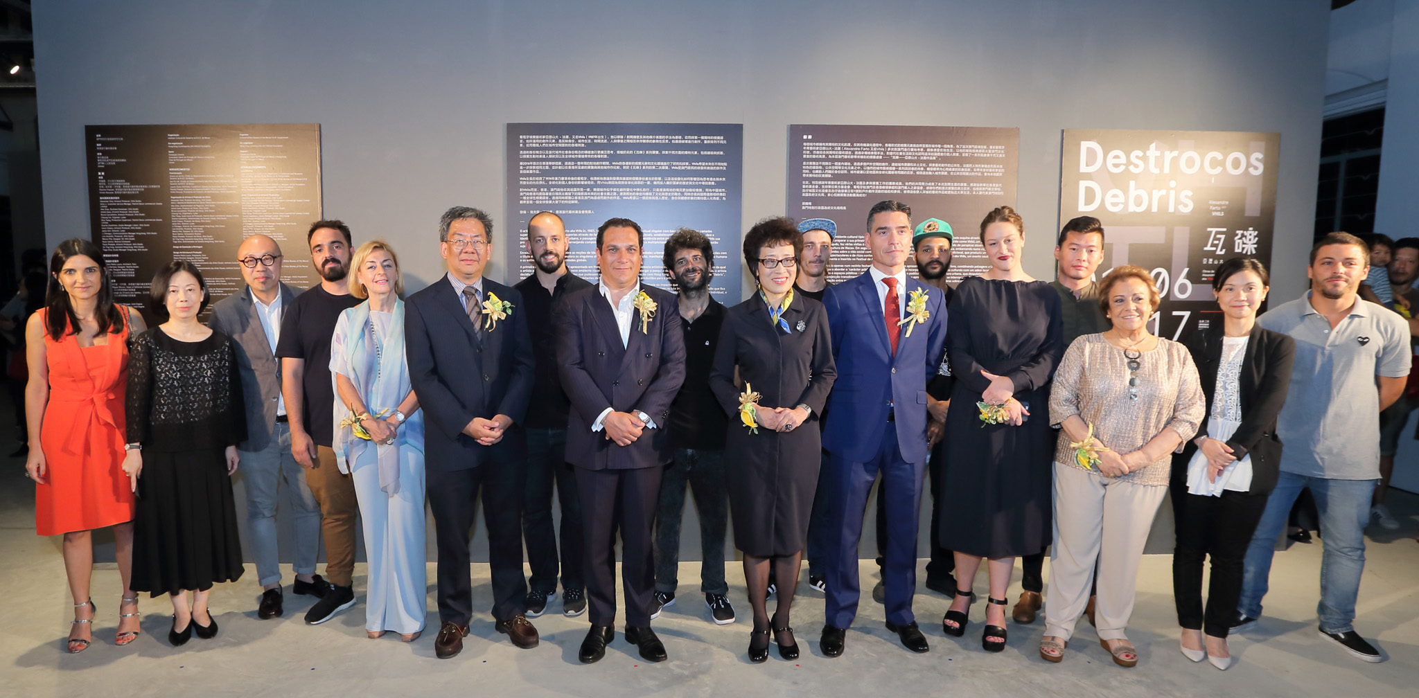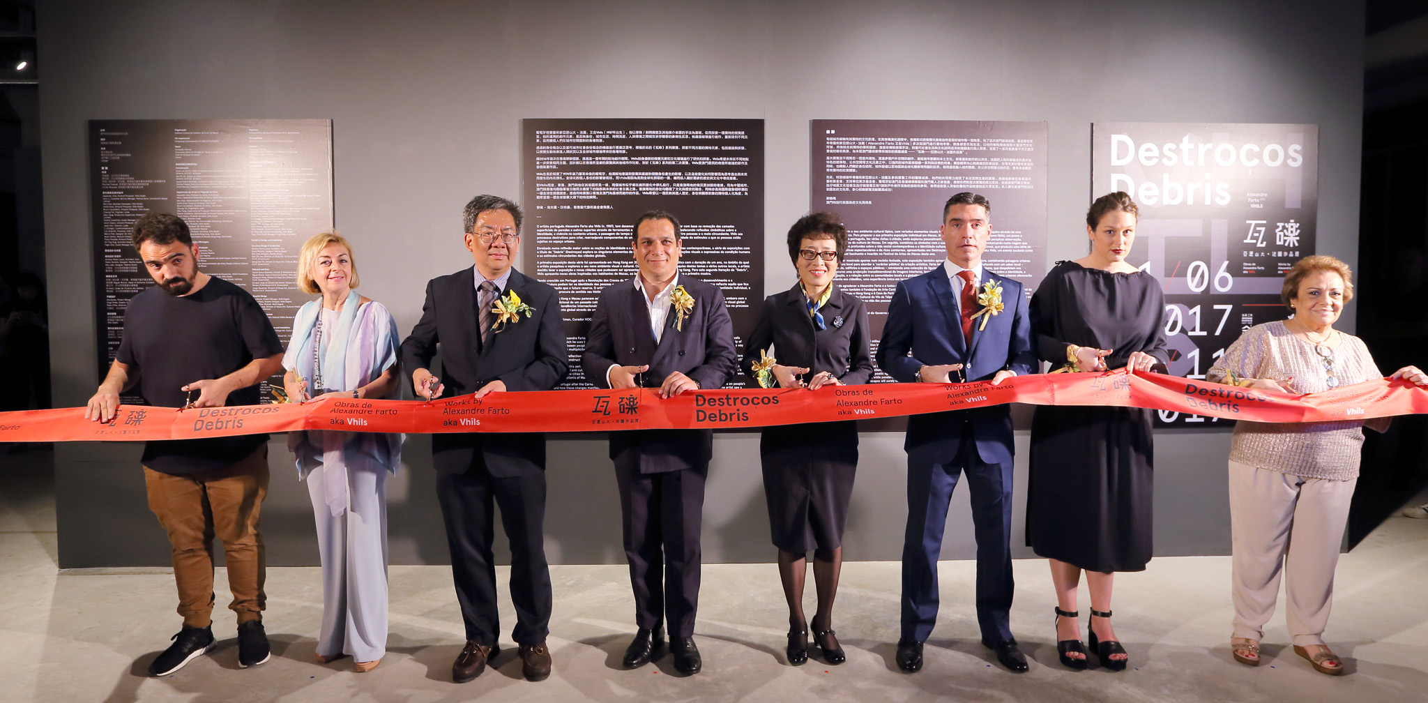 Organized by the Cultural Affairs Bureau, co-organized by the Hong Kong Contemporary Art (HOCA) Foundation and supported by the Orient Foundation, the Consulate General of Portugal in Macao and Hong Kong and Casa de Portugal em Macau, the exhibition “Debris - Works by Alexandre Farto aka Vhils” was inaugurated on Wednesday, 31 May, at 6:30pm, at the Navy Yard No.1 - Contemporary Art Center. The opening ceremony was officiated by the Deputy Commissioner of the Ministry of Foreign Affairs of the People’s Republic of China in the Macao S.A.R., Wang Dong; the Secretary of State of Industry of Portugal, João Vasconcelos; the Consul-General of Portugal in Macao and Hong Kong, Vitor Sereno; the President of the Cultural Affairs Bureau of the Macao S.A.R. Government, Leung Hio Ming; the Director of Development of the Hong Kong Contemporary Art Foundation, Pauline Foessel; the Head of Delegation of the Orient Foundation in Macao, Ana Paula Cleto Godinho; the President of the Board of Directors of Casa de Portugal in Macao, Maria Amélia António; and the artist Alexandre Farto aka Vhils. This exhibition, integrated in the 28th Macao Arts Festival, features over 20 works including four new murals inspired by Macao in the public space. The exhibition is open to the general public.