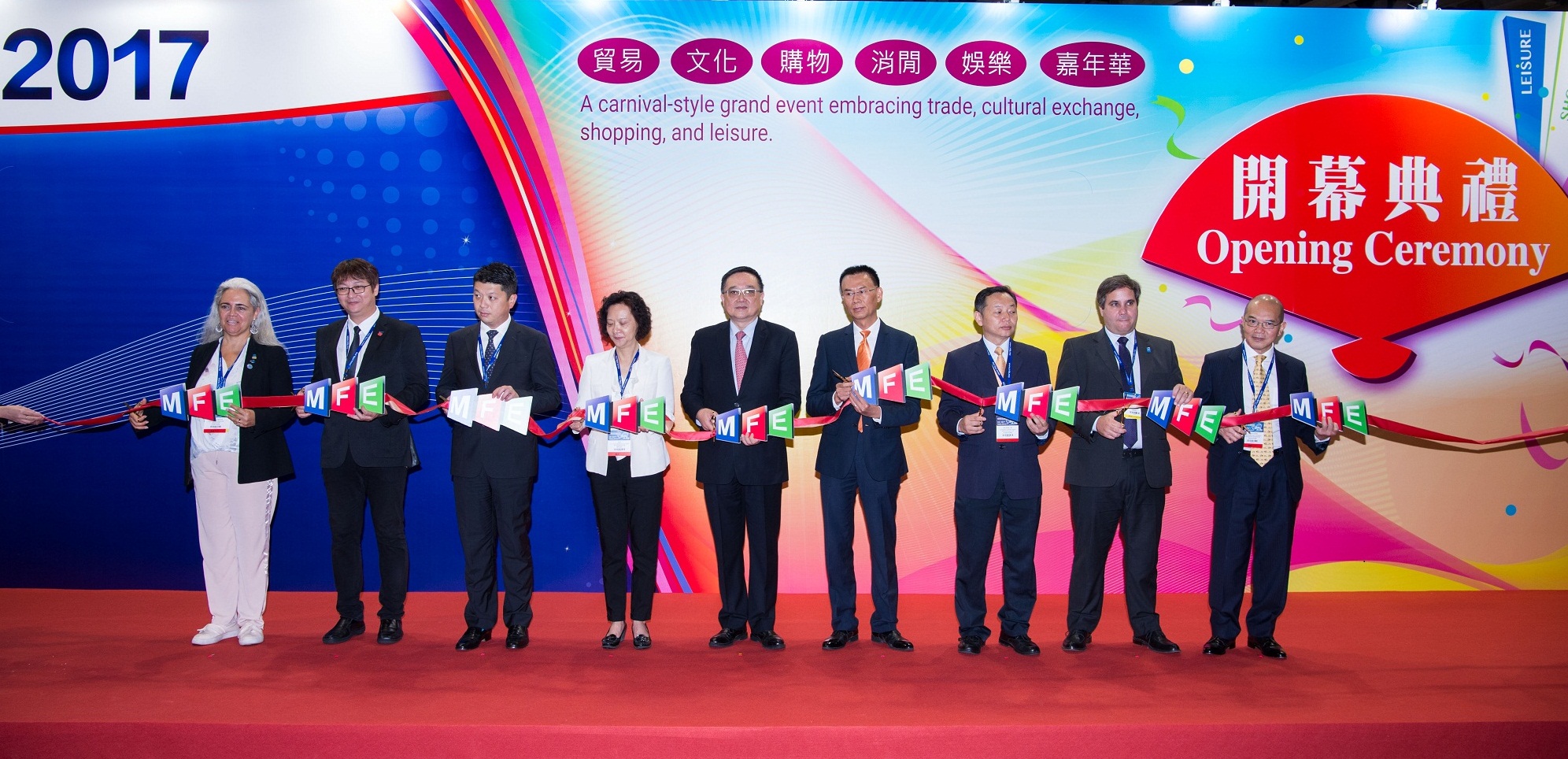 Officiating guests at the opening ceremony of 2017MFE included: Jackson Chang, President of the Macao Trade and Investment Promotion Institute (IPIM), who was also representing Macao’s Secretary for Economy and Finance at the event; Chen Xing, Deputy Director-General of the Economic Affairs Department and Head of the Commercial Office of the Economic Affairs Department of the Liaison Office of the Central People’s Government in the Macao SAR; Mr Jaman Wong, Chairman of the Macau Chain Stores and Franchise Association; Mr Kevin Ho, Vice Chairman of the Macao International Brand Enterprise Commercial Association; Mr Wilson Lee, Chairman of the Licensing & Franchising Association of Hong Kong; Mr Ben Ke, Deputy Secretary-General of the Association of Chain and Franchise Promotion, Taiwan; Mr Bruno Amado, Project Manager for the Brazilian Franchise Association; Ms Cristina Maria Matos, General Manager of the Portuguese Franchise Association; and Mr Albert Kong, Committee Member of Singapore’s Franchising and Licensing Association.