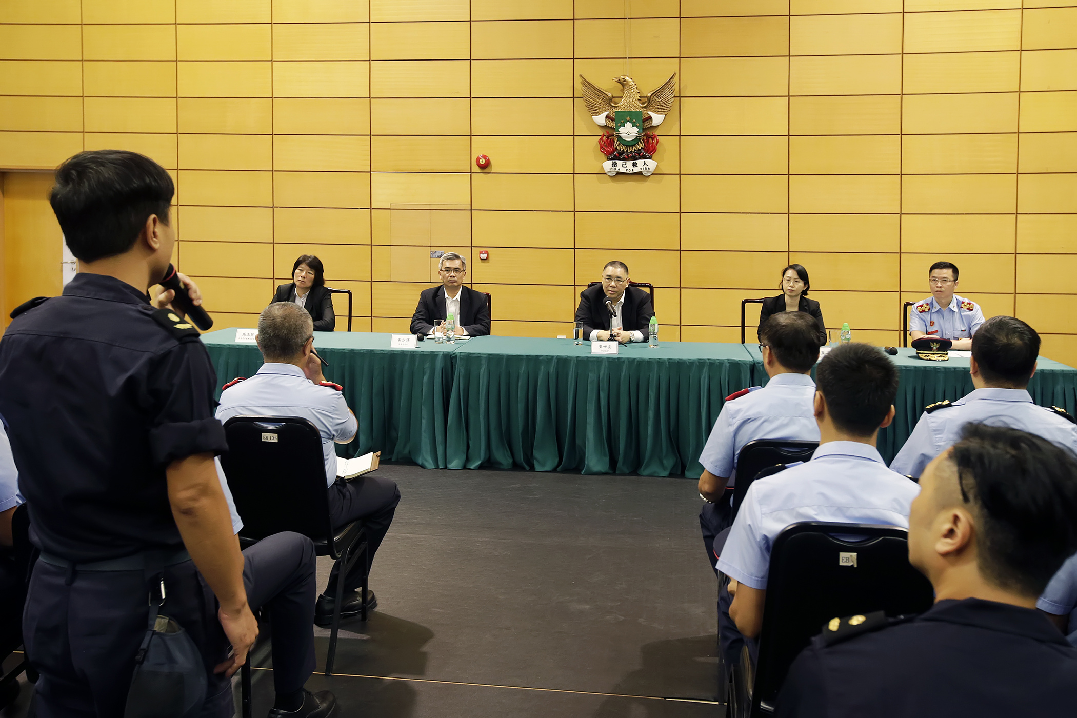 Mr Chui – on behalf of the Government and in a personal capacity – expressed sincere gratitude to the city’s public safety and public security personnel, and expressed particular thanks to their families for the support and understanding they had shown.
