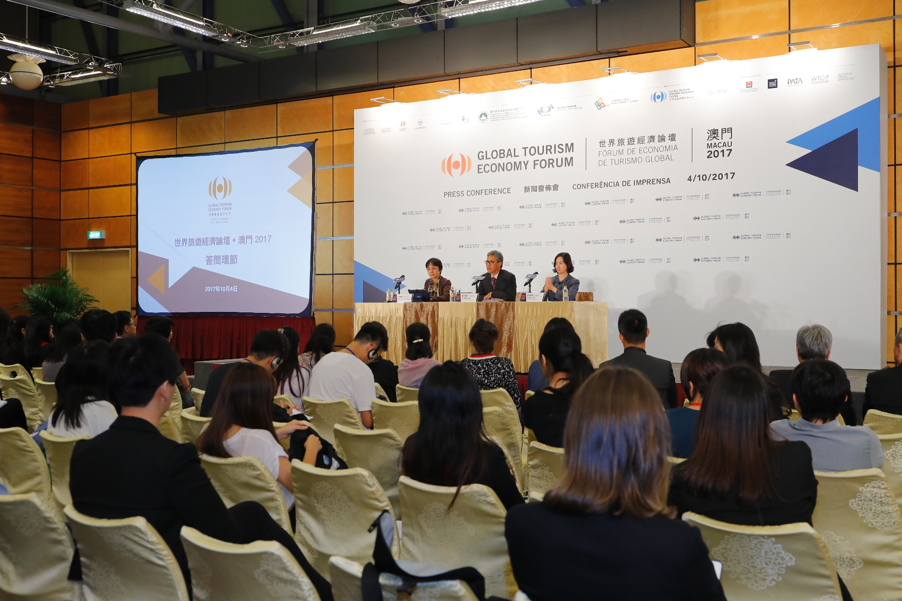 A pre-event press conference was held at the Macau Tower Convention & Entertainment Centre today (4 October) and attended by the Chief of Office of the Secretary for Social Affairs and Culture of the Macao Special Administrative Region Government, Ip Peng Kin, and Director of Macao Government Tourism Office (MGTO), Maria Helena de Senna Fernandes. The Vice Chairman and Secretary-General of GTEF, Pansy Ho, presented an introduction of the Forum programme.