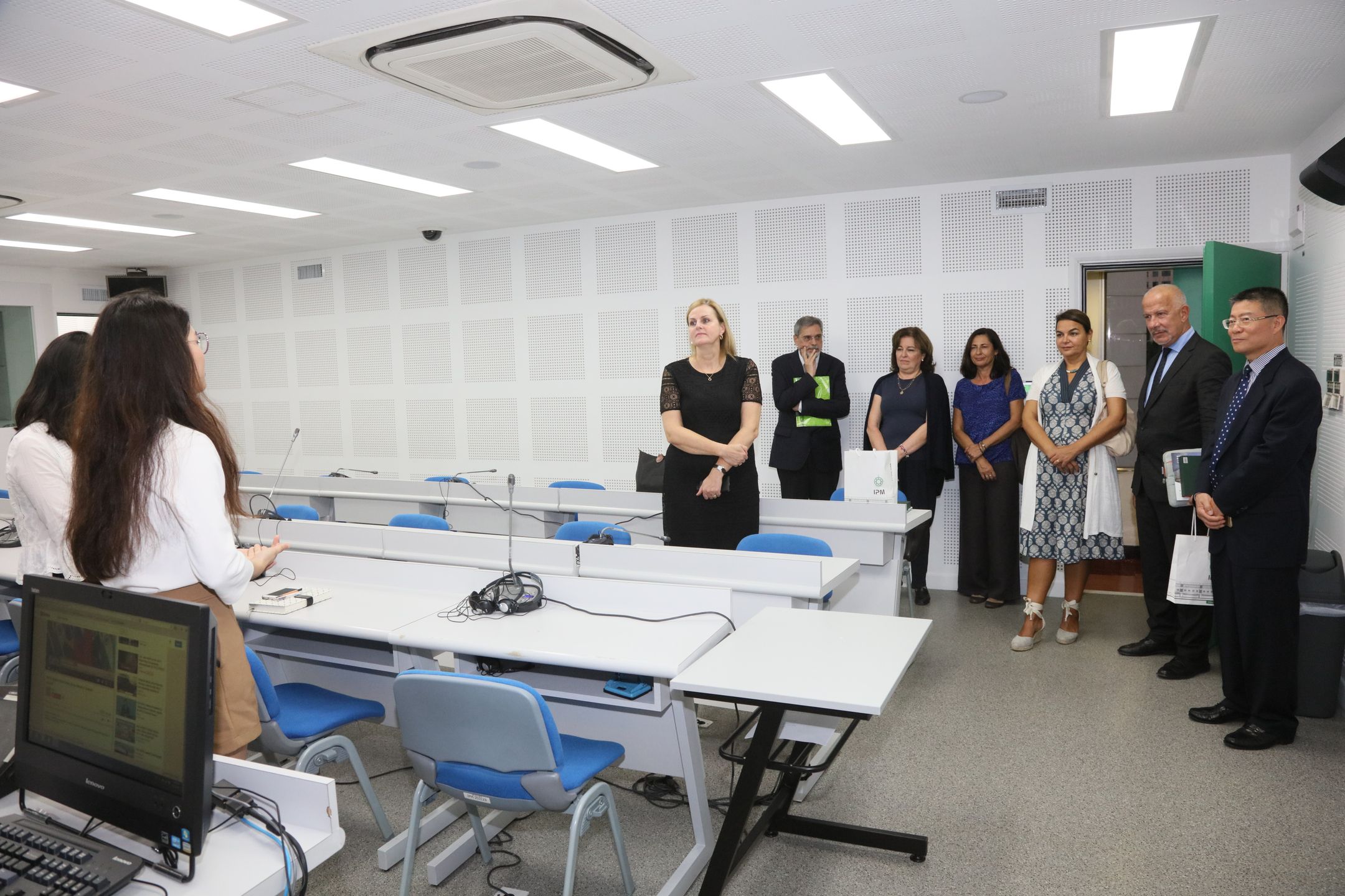 In order for Macao Polytechnic Institute (MPI) to strengthen its ten-year cooperation with the Council of the European Commission (EC), a delegation from the EC comprising Dr. Florika Fink-Hooijer, Director-General of the Department for Interpretation and Ms. Maria Preter, representative of the Director-General of the Department for Translation, visited the Institute on 9 October. The delegation paid a visit to MPI’s Chinese-Portuguese-English Machine Translation Laboratory as well as its Interpretation Laboratory. They received a warm welcome from MPI’s President Professor Lei Heong Iok among others. Dr. Hooijer commended on the sophisticated Chinese-Portuguese machine translation engine which has lent immense support to interpretation and translation tasks. She hopes to enhance academic cooperation with MPI to nurture more professional translators.