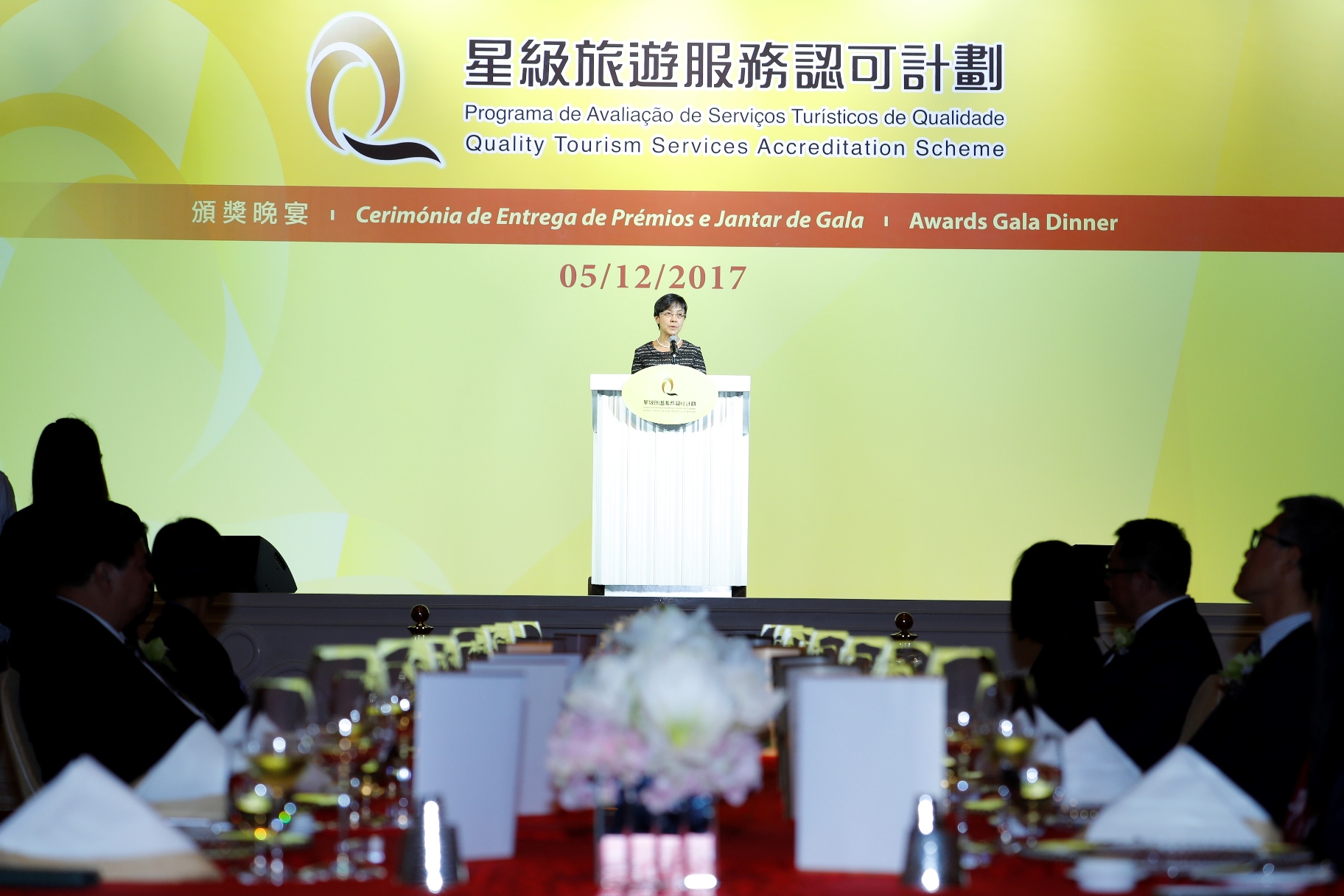 Macao Government Tourism Office (MGTO) has been carrying out the “Quality Tourism Services Accreditation Scheme” (“QTSAS” or the “Scheme”) for four years in a row. This year, the Scheme continues to target the catering sector and travel agencies. Studies will take place on the feasibility of covering other sectors in the Scheme as well. Including the winners of 2017, a total of 233 catering businesses and 37 travel agencies have been presented the “Star Merchant Award” since the Scheme was first launched. The Office hosted a QTSAS Awards Gala Dinner tonight (5 December).