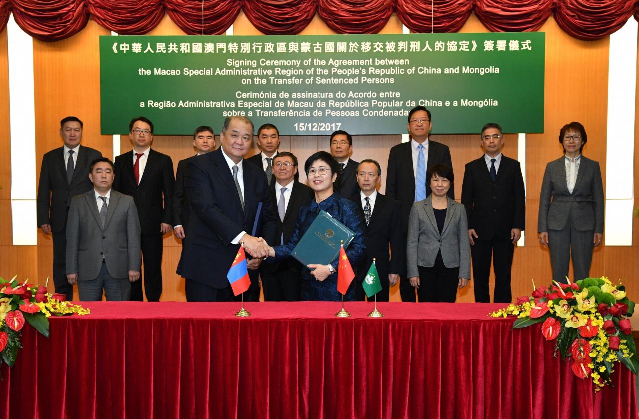 The Macao Special Administrative Region (SAR) and Mongolia have signed a reciprocal agreement on the transfer of sentenced persons, in order to enhance judicial cooperation between the two sides.