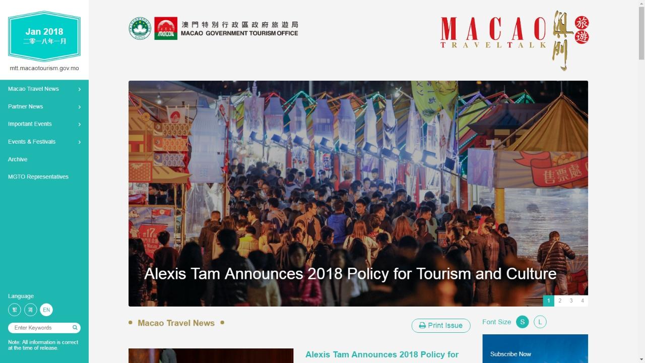 Macao Government Tourism Office's (MGTO) monthly publication for tourism industry stakeholders - Macao Travel Talk (MTT) - has been upgraded to optimize its current features and provide several new functions to its users for more enhanced reading experience.