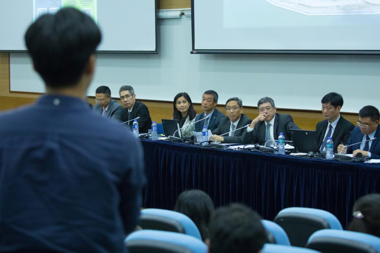 In the Q&A session, students raised many questions to the speakers. Some students wanted to learn more about the relationship between large-scale infrastructure projects and economic growth of Macao. Others asked how Macao can improve its overall competitiveness. Still others asked the guests about the career prospects for engineering majors in Macao. The secretary and heads of bureaus and offices shared professional opinions and industry insights with the students.