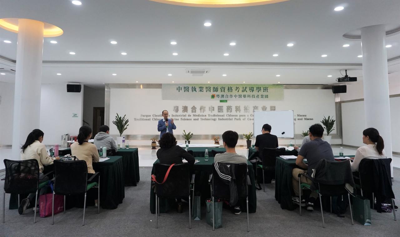 In order to facilitate the TCM physicians (practitioners) in Macao to learn about the Traditional Chinese Medicine Practitioners Qualification Exam of Mainland China, by broadening the scope of their fields of specialization and practice, and further improve their professional competences, the Guangdong-Macao Traditional Chinese Medicine Science and Technology Industrial Park (hereinafter referred to as the “Industrial Park”) held a "Guidance Course for Traditional Chinese Medicine Practitioners Qualification Examination " from 14 to 15 of April, at the Industrial Park. A team of professors and experts were invited to deliver presentations on the details of the program and preparation for the exam. The Course has attracted approximately 10 TCM registered physicians from Macao.