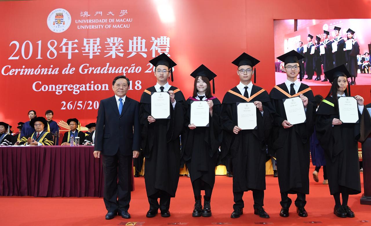 The University of Macau (UM) today (26 May) awarded academic prizes to 63 outstanding graduates at the Congregation 2018. In this academic year, the university gave out a total of MOP 4 million in over 60 kinds of academic prizes and scholarships to more than 380 students.