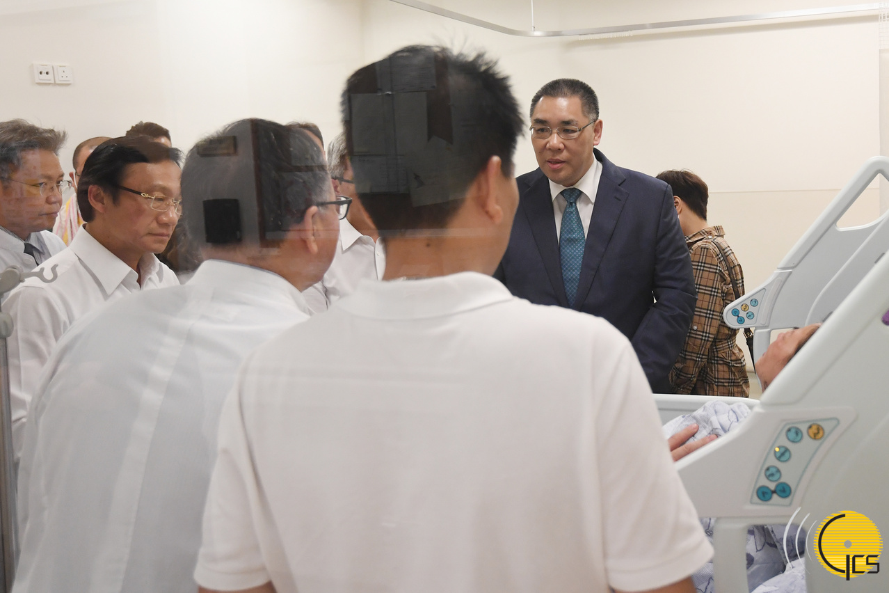 The Chief Executive then went to Conde S. Januario Hospital with Secretaries Wong and Tam, and Commissioner Ma. On his visit to the injured, Mr Chui was accompanied by: the Director of the Health Bureau, Mr Lei Chin Ion; the President of the Social Welfare Bureau, Ms Vong Yim Mui; the Deputy Director of the Health Bureau and Director of the Conde S. Januario Hospital, Dr Kuok Cheong U; and the Medical Director of the Conde S. Januario Hospital, Dr Lei Wai Seng.