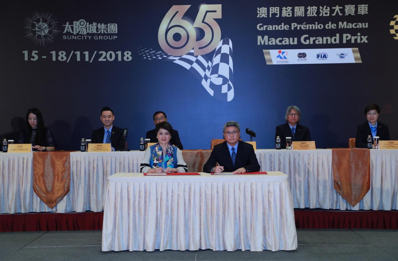 The press conference was attended by: Mr. Pun Weng Kun, President of the Sports Bureau of the Macao SAR and Coordinator of the Macau Grand Prix Organizing Committee (MGPOC) ; Mr. Charles Lo Keng Chio, President of the General Assembly of the Automobile General Association of Macao-China; Mr. Chong Coc Veng, Board of the Directors of the of Automobile General Association of Macao-China and Coordinator of Sporting Subcommittee of MGPOC; Mr. Allen Lau Cho Un and Ms. Christine Lam Lin Kio, Deputy Coordinators of the MGPOC; Ms. Gina Lei, Senior Vice President Corporate & Community Relations of Suncity Group; Ms. Angela Leong, Managing Director and Chief Administrative Officer of Sociedade de Jogos de Macau, S.A. (SJM); and Mr. Lei Weng Fai, Chief Executive Officer of FOOD4U.