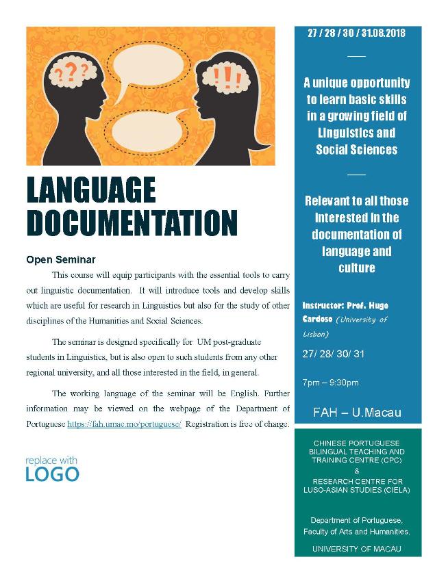 The Chinese-Portuguese Bilingual Teaching and Training Centre and the Research Centre for Luso-Asian Studies, under the University of Macau (UM) Faculty of Arts and Humanities, will jointly hold a seminar titled ‘Methods of Language Documentation’ from 27 August to 3 September. The seminar will be conducted by Prof Hugo Cardoso from the University of Lisbon and will cover relevant basic theories and practices of language documentation.
