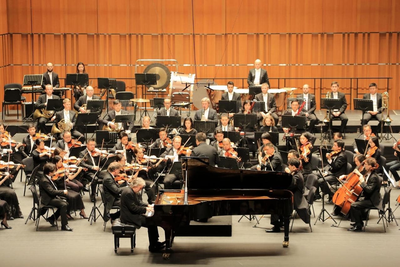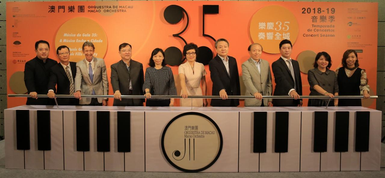 The Macao Orchestra (OM, from the Portuguese acronym), under the auspices of the Cultural Affairs Bureau, held the opening ceremony of its 2018-19 Concert Season on 1 September, at the lobby of the Macao Cultural Centre Grand Auditorium, followed by the season opening concert “Sergei Rachmaninoff by Barry Douglas”. The opening ceremony was officiated by the Acting Commissioner of the Ministry of Foreign Affairs of the People's Republic of China, Wang Dong; the President of the Cultural Affairs Bureau, Mok Ian Ian; the Assistant of the Deputy Director of the Department of Publicity and Culture of the Liaison Office of the Central People's Government in the Macao S.A.R., Shao Bin; the Chairman of the China Symphony Development Foundation, Chen Guangxian; members of Macao Orchestra Advisory Committee, Dai Ding Cheng, Kevin Thompson, Johnny M Poon and Cao Yiji; the Head of the Department of Performing Arts Development of the Cultural Affairs Bureau, Iu Wai Man; the Music Director and Principal Conductor of the Macao Orchestra, Lu Jia, and the General Manager of the Macao Orchestra, Rebecca Chou.