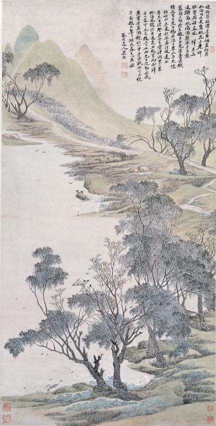 Wu Li (1632-1718), with original name Qili and style name Yushan, was born in Changshu, Jiangshu province. Because there was a very deep well (mo jing) of Yan Yan, Wu Li got the sobriquet “Mo Jing Dao Ren” (Deep Well Taoist). During the Kangxi period, Wu Li came to Macao with Philippus Couplet, a Belgian Jesuit, and resided at St. Paul’s College where he studied Latin and Christian theology before returning to Jiangsu. In 1682, he joined the Society of Jesus and became a Jesuits friar in Hangzhou. He was ordained as a priest in Nanjing in 1688, and then started preaching in the Shanghai area; he passed away in Shanghai. Wu Li was highly literate, capable at poetry and prose as well as good at musical instruments and arts. His works collected all the good qualities of different masters and were based on the theme of nature, especially famous for his landscape paintings. He was one of the “Six Masters of Qing”, together with Wang Shimin, Wang Jian, Wang Yuanqi, Wang Hui and Yun Shouping, having a profound influence on the history of Chinese art and the development of Chinese Catholicism.