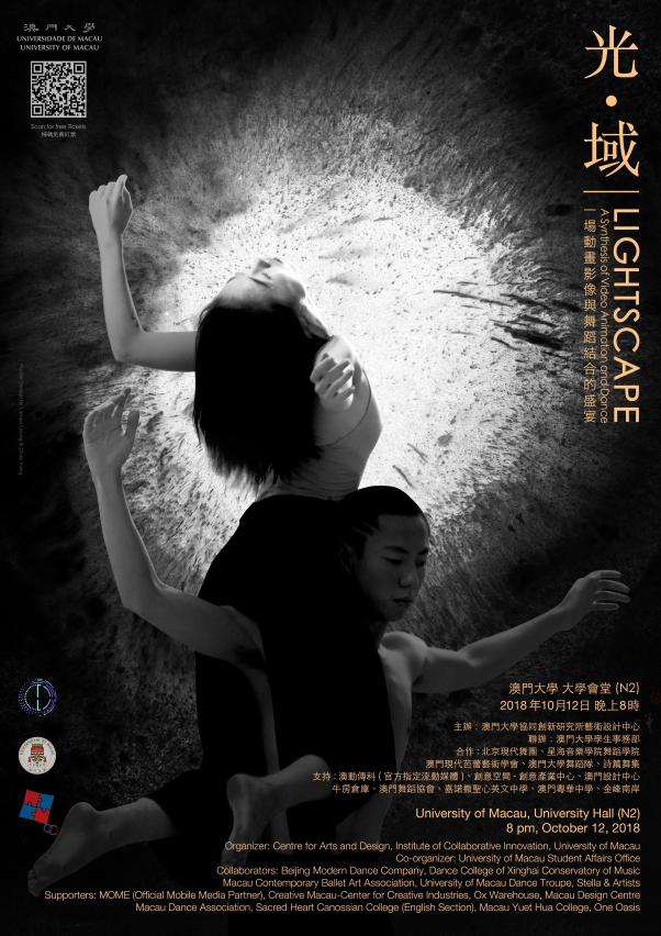 A performance titled ‘Lightscape: A Synthesis of Video Animation and Dance’, organised by the Centre for Arts and Design, University of Macau (UM), will be held next Friday (12 October) at 8:00pm in the UM University Hall (N2). Created and produced by members of the Centre for Arts and Design, the performance is a synthesis of video animation and dance through which the audience will be able to explore the beauty of multimedia art. Participants in the performance come from the famous dancing artist Yanjinzi Gao’s Beijing Contemporary Dance Company, Xinghai Conservatory of Music from Guangzhou, as well as various dance troupes in Macao. Those who are interested please register online for free tickets.