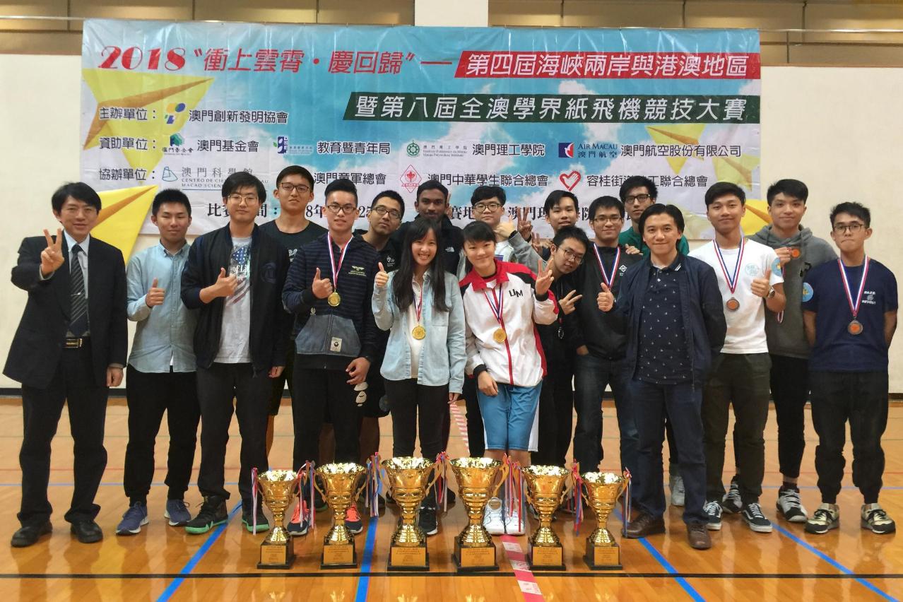 The event was organised by the Macao Innovation and Invention Association. In the longest airtime (group) contest, the team ‘Guard of CS2C’, formed by students Lei Hin Chon, Tang Choi I, and Iong Sam I, won the first prize. The team ‘Far Poetry’, formed by students Chan Cheok Hin, Chow Haw Yen, and Gong Junwei, won the second prize. The team ‘Planes Queue Before Landing’, formed by Wong Chi Hong, Sin Wai Kit, and Wong Wai Hong, won the third prize. The students received guidance from FST Senior Instructor Lao Seng Kin.