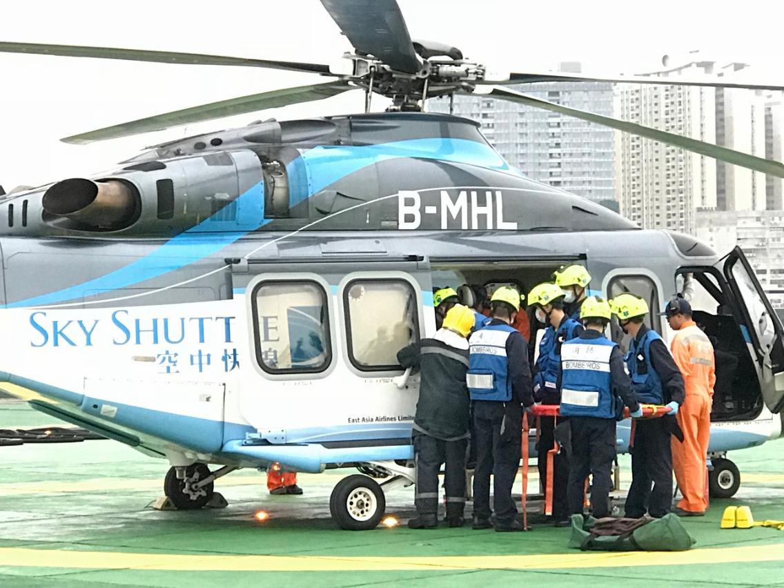 In this exercise scenario, a helicopter which was carrying two flight crew and three passengers took off from the Macau Outer Harbour Heliport and encountered a tail rotor drive failure. The accident resulted in a forced heavy landing on the mainpad and some parts of the aircraft were detached and scattered on the ground. One passenger suffered from serious injuries while the other two only met minor injuries. The two flight crew did not get hurt. After the accident, the heliport immediately activated the emergency response procedures: putting the fire-fighting system in the standby mode, the fire engines and the ambulances arriving immediately at the ferry terminal, delivering the injured to the hospital, evacuating all personnel and so on.