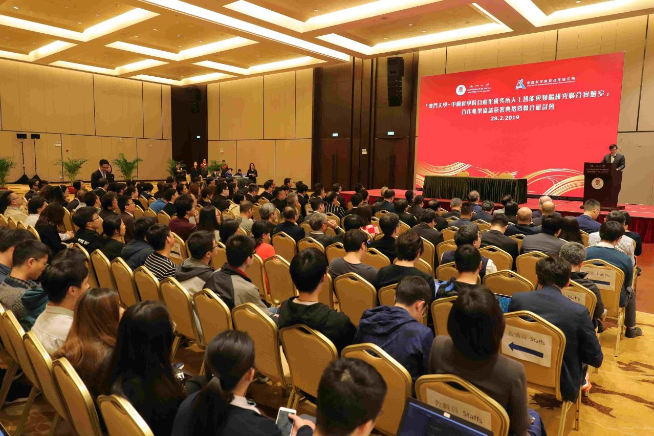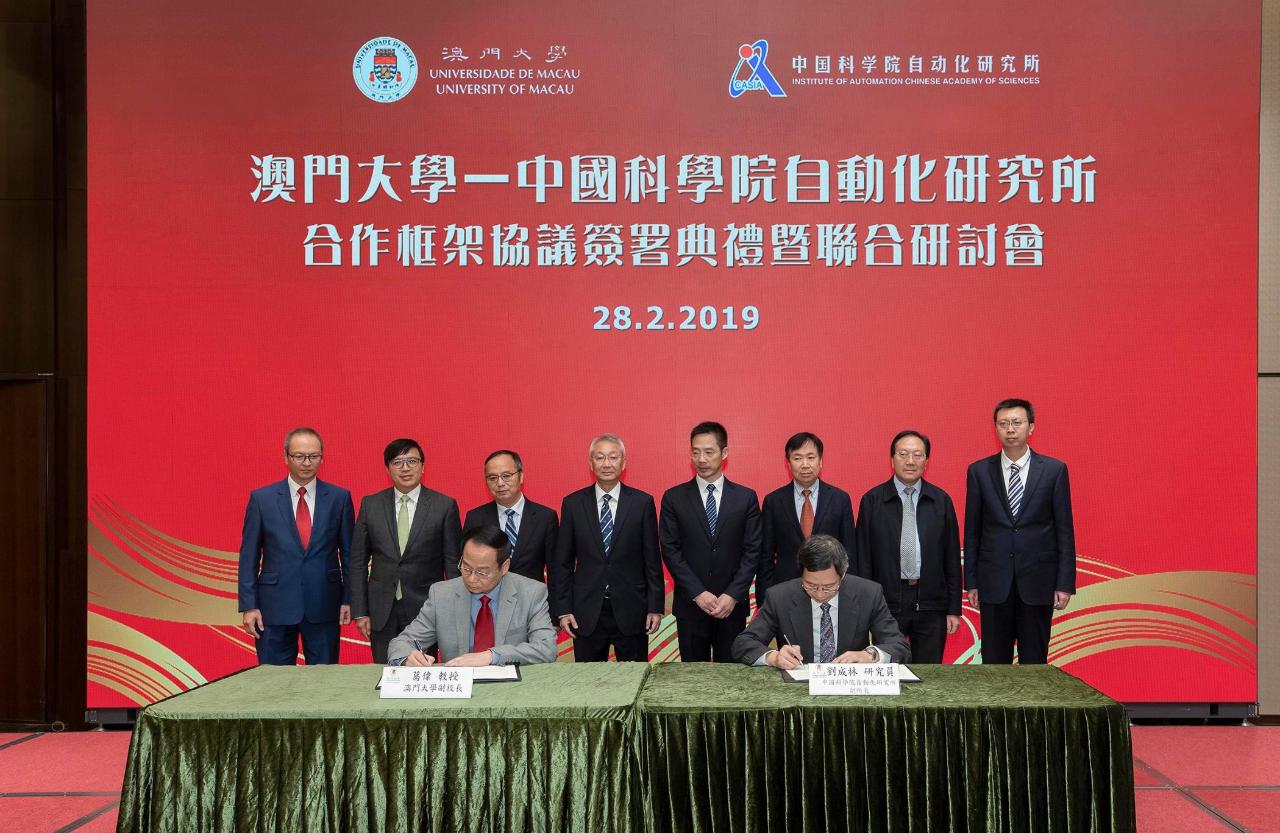 The University of Macau (UM) today (28 February) held a ceremony for the signing of a collaborative framework agreement with the Institute of Automation, Chinese Academy of Sciences (CAS-IA), and a joint academic workshop. The agreement aims to maximise the research capacity of both UM and the CAS-IA in artificial intelligence (AI) and brain-inspired intelligence, promote their research development in related scientific fields, integrate their academic strengths and resources, as well as initiate innovative collaborative research in AI and brain-inspired intelligence.