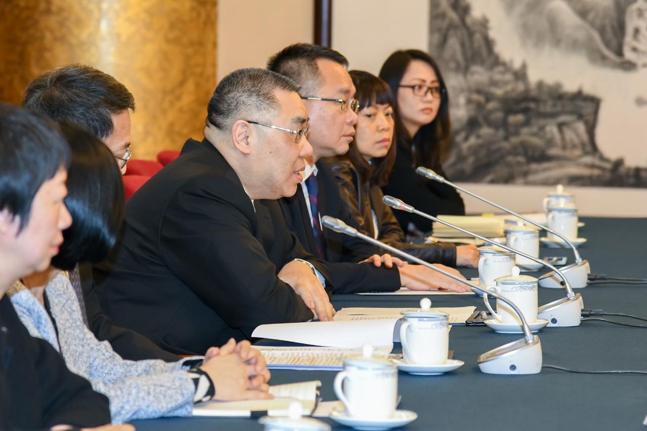 Macao officials attending today’s meeting included: the Director of the Policy Research and Regional Development Bureau, Mr Mi Jian; the Director of the Government Information Bureau, Mr Chan Chi Ping; the Director of the Protocol, Public Relations and External Affairs Office, Ms Lei Ut Mui; and the Director of the Representative Office of the Macao SAR in Beijing, Mr Leong Kit Chi.