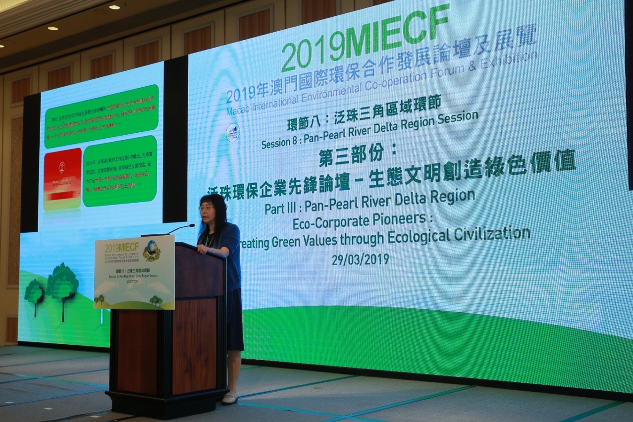 As part of the Green Forum of “The 2019 Macao International Environmental Co-operation Forum & Exhibition” (2019MIECF), the “Pan-Pearl River Delta Region Session” was held today (29 March). On this day, Mr Jiang Xiaoting, President of the Sichuan Province Environmental Science Association, shared the findings of the mission of the “Pan-Pearl River Delta Region Delegation to Portugal and Luxembourg”. According to him, this exchange experience has inspired members in the development of green finance.