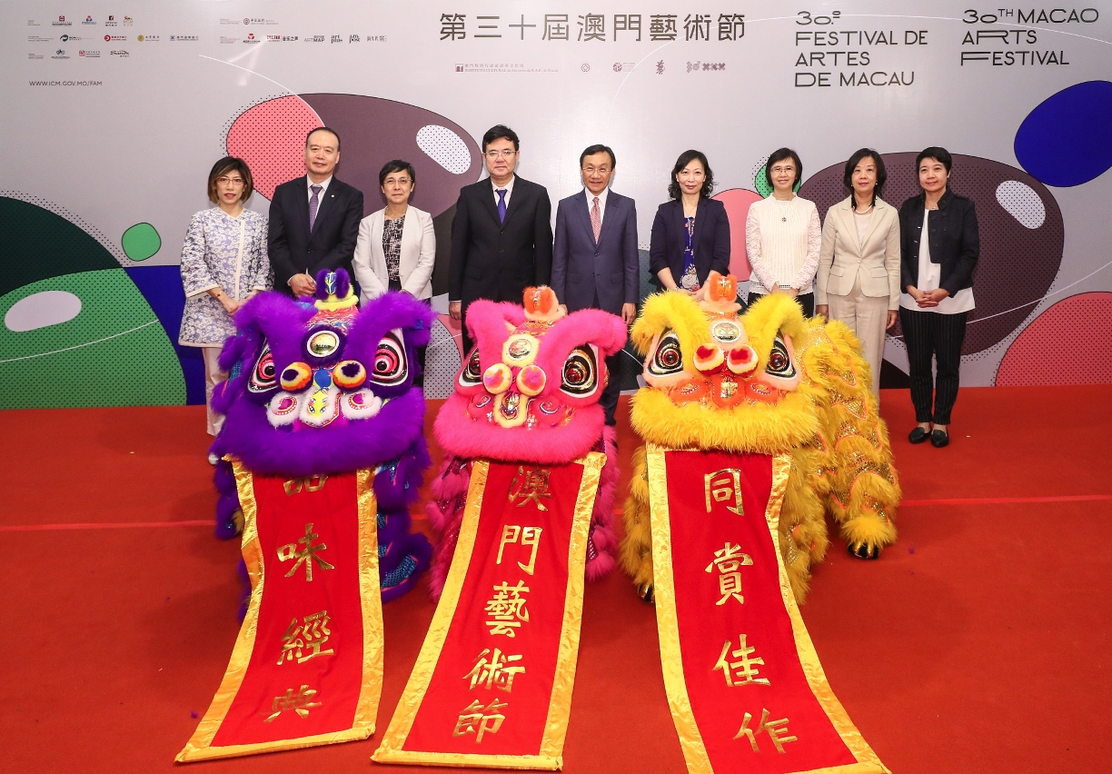 The 30th Macao Arts Festival (MAF), organized by the Cultural Affairs Bureau, was inaugurated on Friday, 3 May, at 7:40pm, at the lobby of the Macao Cultural Centre Grand Auditorium. The opening ceremony was officiated by the Secretary for Social Affairs and Culture of the Macao SAR Government, Alexis Tam Chon Weng; the Deputy Director of the Liaison Office of the Central People's Government in the Macao SAR, Xue Xiaofeng; the President of the Cultural Affairs Bureau, Mok Ian Ian; the Director of the Macao Government Tourism Office, Maria Helena de Senna Fernandes; the Member of the Administrative Committee of the Macao Post and Telecommunications Bureau, Van Mei Lin; the Deputy General Manager of Bank of China (Macau Branch), Geng Wei; the Director and Member of Executive Committee of Teledifusão de Macau, S.A., Lorman, Lo Song Man; the Vice President of Arts & Culture of MGM, Cristina Kuok; and the Vice President of the Cultural Affairs Bureau, Leong Wai Man. A junior lion dance performance by MGM was also held. In order to celebrate the 30th anniversary of the Macao Arts Festival, the Macao Post and Telecommunications Bureau set up a booth in the lobby of the Macao Cultural Centre to sell philatelic products.