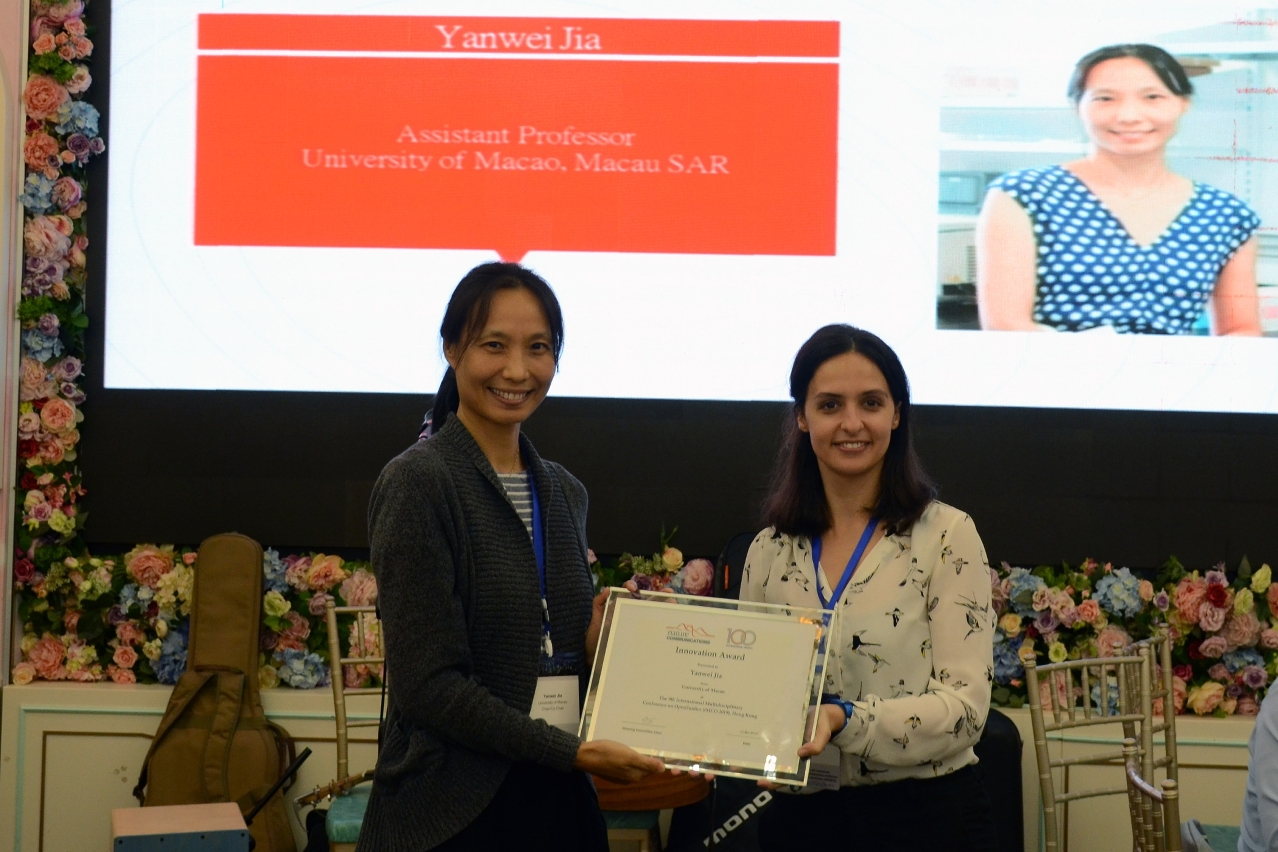 Dr Jia Yanwei, an assistant professor from the State Key Laboratory of Analog and Mixed Signal VLSI (AMSV), University of Macau (UM), recently received an Innovation Award at the Ninth International Multidisciplinary Conference on Optofluidics (IMCO) for her study titled ‘Digital Microfluidics for Disease Diagnostics’. A PhD student from Dr Jia’s research group, namely Shen Ren, received the Best Poster Award at the same conference for his paper titled ‘Hairpin-structured PCR Enhancer for Digital Microfluidic Systems’. The awards are testament to their contributions in applying digital microfluidics in biomedical sciences.