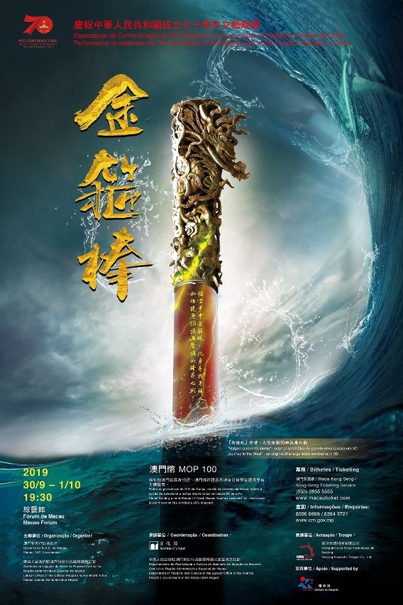 The “Performance to celebrate the 70th Anniversary of the National Day of the People’s Republic of China”, jointly organized by the Macao SAR Government and the Liaison Office of the Central People's Government in the Macao SAR, coordinated by the Cultural Affairs Bureau and the Department of Publicity and Culture of the Liaison Office of the Central People’s Government in the Macao S.A.R., and supported by the Sports Bureau, specially features the spectacular acrobatic show “The Golden Hooped Rod” performed by the Nanjing Acrobatic Troupe Co. Ltd., allowing the public to enjoy an exquisite acrobatic show while celebrating the National Day. The show will be held on 30 September and 1 October, at 7:30pm, at the Macao Forum. Tickets are now on sale at the Macau Ticketing Network.