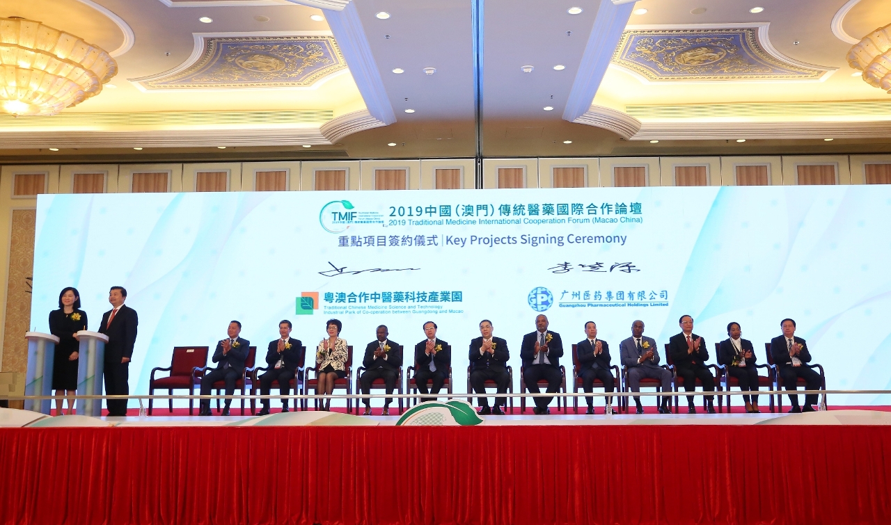 The honored guests present at the opening ceremony of the Forum included Mr. Chui Sai On, Chief Executive of the Macao Special Administrative Region; Mr. Fu Ziying, Director-General of the Liaison Office of the Central People’s Government in the Macao SAR; Dr. Arlindo Nascimento do Rosário, Minister of Health and Social Security of Cape Verde; Dr. Edgar Neves, Minister of Health of the Democratic Republic of São Tomé and Príncipe; Mr. Huang Liuquan, Deputy Head of the Hong Kong and Macao Affairs Office of the State Council; Ms. Wang Dong, Deputy Commissioner of the Ministry of Foreign Affairs of the People’s Republic of China in the Macao SAR; Mr. José Manuel Vieira Dias da Cunha, Secretary of State for Public Health of the Republic of Angola; Mr. Zhang Guangjun, Vice Governor of the People's Government of Guangdong Province; Mr. Wang Guoqiang, former Deputy Director of the then National Health and Family Planning Commission, former Director of the State Administration of Traditional Chinese Medicine and current President of China Association of Chinese Medicine; Mr. Leong Vai Tac, Secretary for Economy and Finance of the Macao SAR Government; Ms. Felisbela Gaspar, National Director of Traditional and Alternative Medicine of the Ministry of Health of Mozambique; Mr. Yao Yisheng, Deputy Secretary of the CPC Zhuhai Municipal Party Committee and Mayor of Zhuhai Municipal People’s Government; Ms. Lu Hong, Adviser to the Office of the Secretary for Economy and Finance of the Macao SAR Government, and President and CEO of the Guangdong-Macao Traditional Chinese Medicine Technology Industrial Park Development Co., Ltd., etc.