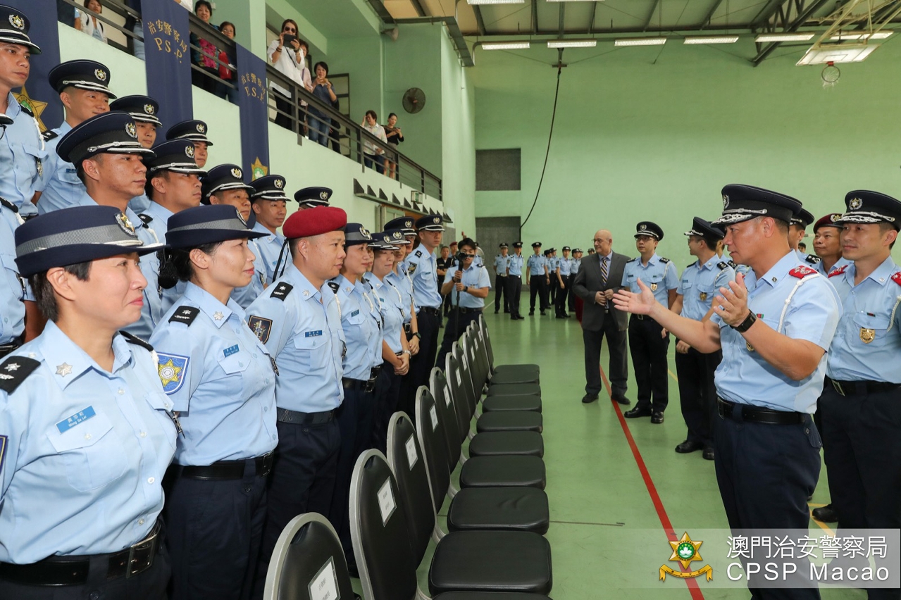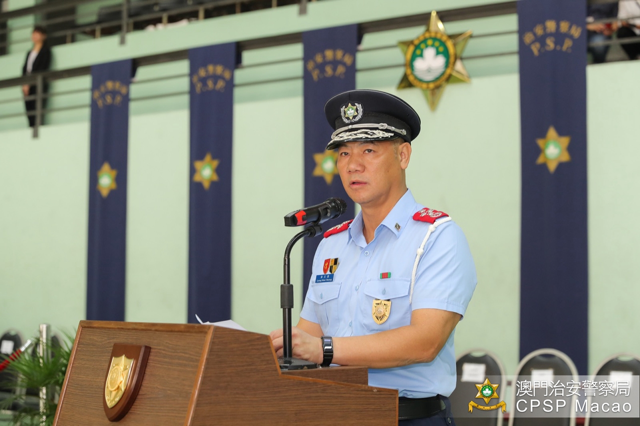 A promotion ceremony to the rank of Senior Inspector was held this morning (28 October) at the Special Police Unit Building of the Public Security Police Force (PSP). The simple and solemn ceremony was officiated by Commissioner Leong Man Cheong and attended by the Directorate and heads of various departments, who wore new epaulettes on the uniforms of the promoted officers, extended to them their warmest congratulations and encouraged them to have better performance in the new stage of their career.