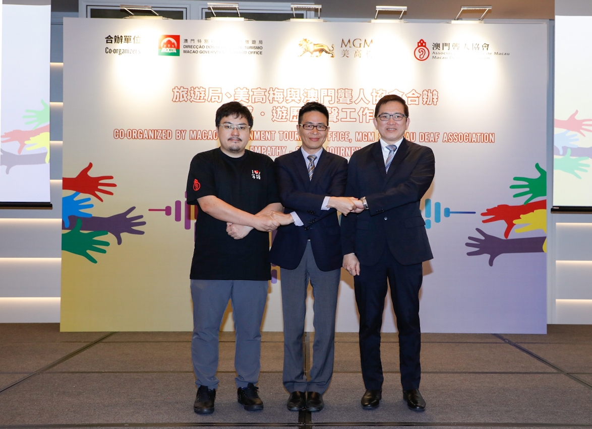 Supporting the Macao Special Administrative Region Government in implementing the scheme to optimize the accessibility of the urban environment in Macao, Macao Government Tourism Office (MGTO) joined hands with MGM and Macau Deaf Association for the first time in organizing the workshops entitled “Empathy‧Silent Journey”, to raise the awareness of tourism industry professionals about the deaf and auditorily-impaired, through the lecture and interactive activities for participants to experience their silent world and real-life scenarios.