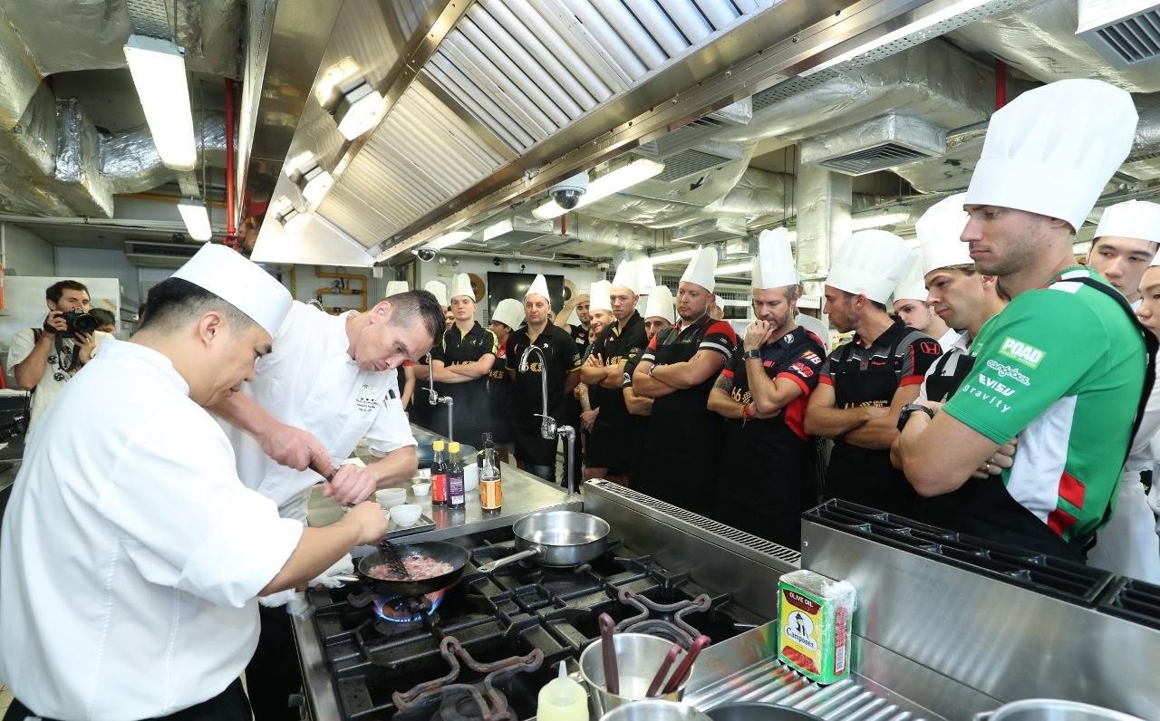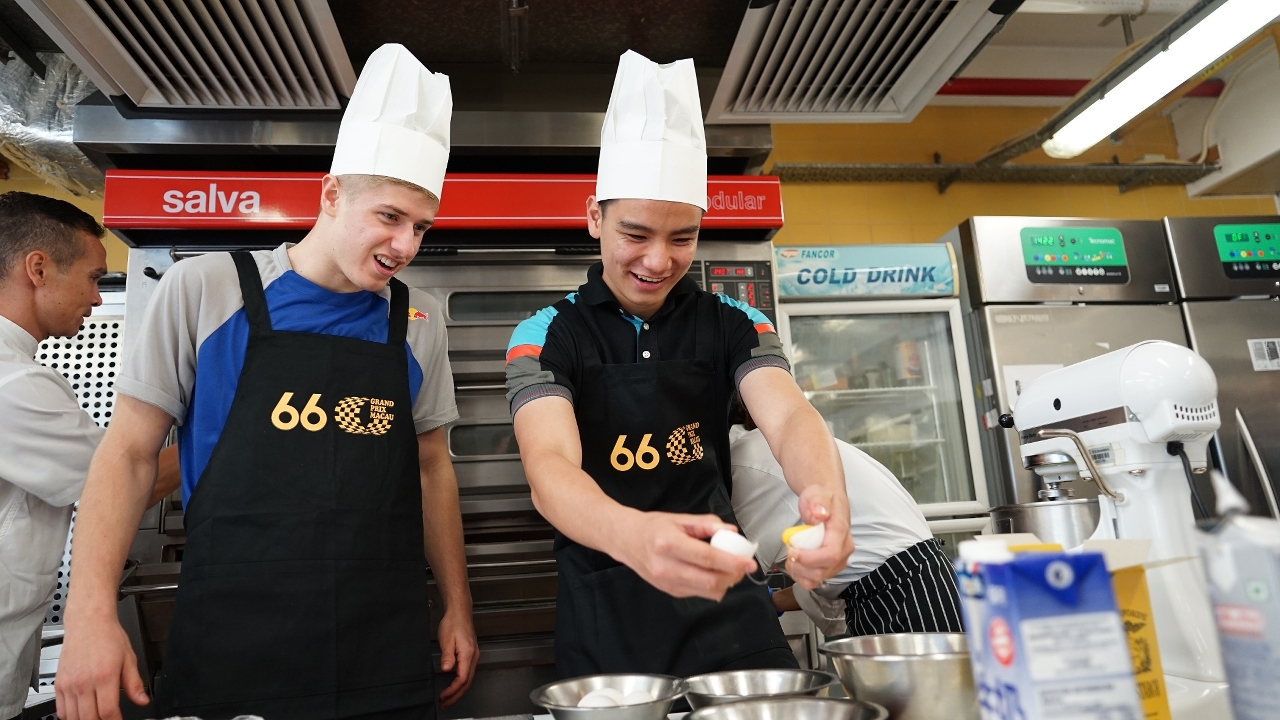 Drivers and riders from the four headlines races at this year’s Suncity Group 66th Macau Grand Prix showed off their culinary skills at the Macao Institute for Tourism Studies (IFTM) today (November 13th), ahead of the weekend’s big event in the Macau Grand Prix IFTM Gastronomy Experience.