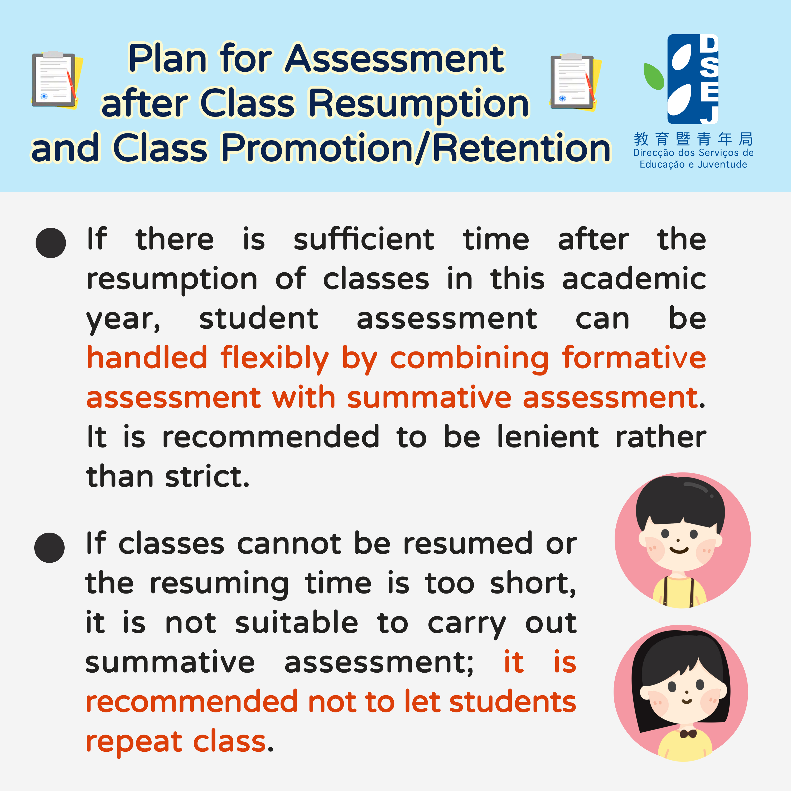 • Plan for Assessment after Class Resumption and Class Promotion/Retention