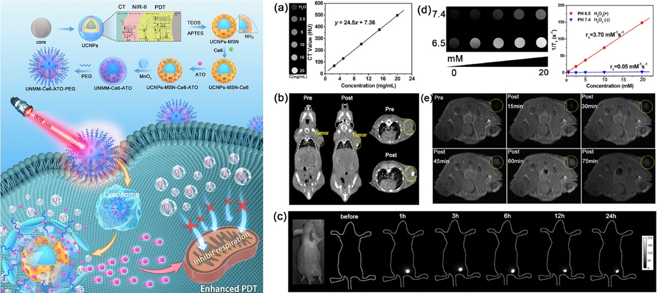 To resolve these challenging issues in traditional PDT, Prof Yuan’s team developed an intelligent compound photodynamic diagnostic agent. The multifunctional cancer theranostic agent has three advantages. First, it has MRI, CT and second near-infrared (1300 nm) fluorescence imaging capabilities, which allows it to accurately locate tumours in deep tissues. Second, it can convert 808-nm near-infrared light into visible light to excite the photosensitiser for deep tumour treatment. Third, it can intelligently release tumour respiration inhibitors that improve tumour hypoxia, thereby enhancing cancer PDT at tumour sites.
