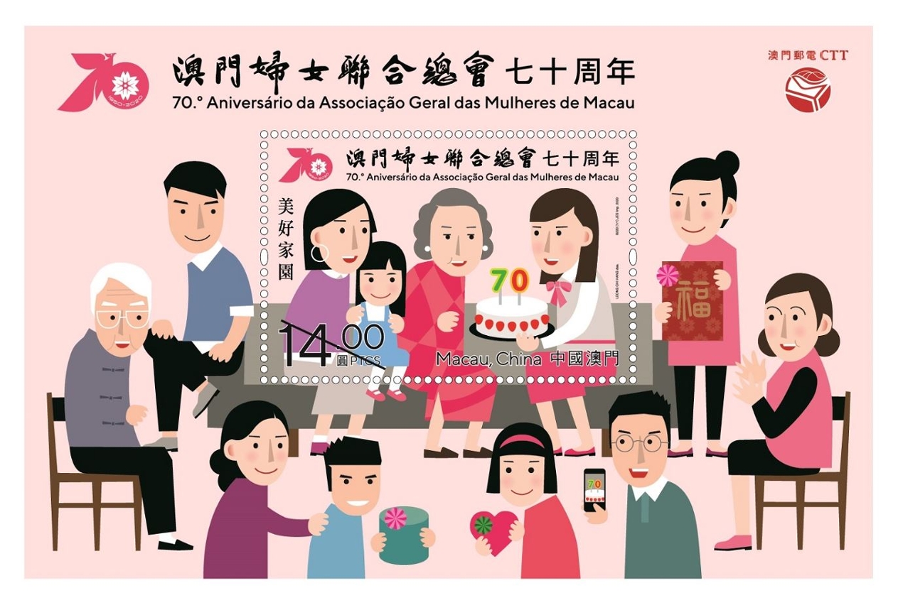 The Women’s General Association of Macau was established in 1950, is the oldest, with the largest number of members and most representative women’s organization in Macao, it’s constituted by members from all sectors and is a large family of women and sisters in Macao. Macao Post and Telecommunications Bureau will issue the stamp theme “70th Anniversary of the Women’s General Association of Macau” on 21st May, 2020, to mark the association’s glorious journey of 70 years alongside the development of women and children in Macao.