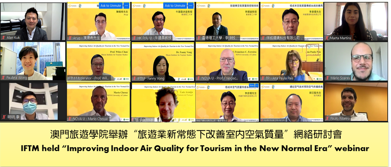On September 8, the Macao Institute for Tourism Studies held webinar on “Improving Indoor Air Quality for Tourism in the New Normal Era”. It was co-organized by IFTM, Nova University of Lisbon, and Turismo de Portugal. The purpose is to discuss the latest trends in improving indoor air quality and ways to restore the confidence of tourists in Macao, the Guangdong-Hong Kong-Macao Greater Bay Area, and Portugal.