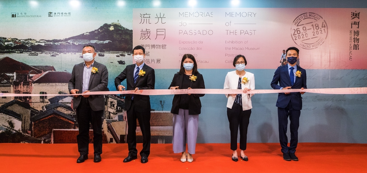 In order to share its valuable collections with the public, the Macao Museum, under the auspices of the Cultural Affairs Bureau, hosts the exhibition “Memory of the Past – Exhibition of the Macao Museum Postcards Collection” until 18th April 2021. The opening ceremony was held on 25th September (Friday), at 6:30 pm, at the main hall of the Museum, and was officiated by the acting President of the Cultural Affairs Bureau, Cheong Lai San; the Deputy Director-General of the Department of Publicity and Culture of the Liaison Office of the Central People's Government in the Macao SAR, Yin Rutao; the Member of the Administrative Committee of the Macao Post and Telecommunications Bureau, Rosa Leong; the Member of the Cultural Consultative Committee, Lin Guangzhi; and the Member of the Cultural Heritage Committee, Tam Chi Kuong.