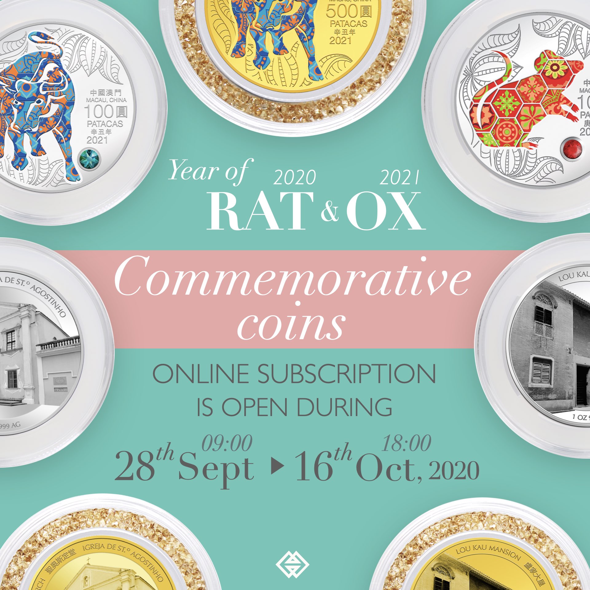 The Monetary Authority of Macao (AMCM) will be launching a new series of Lunar New Year commemorative coins. The online registration process for subscription of 2020 Year of the Rat and 2021 Year of the Ox commemorative coins will commence next Monday (28 September).