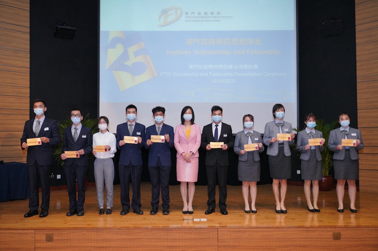 On 16 October, the Macao Institute for Tourism Studies hosted the IFTM Scholarship and Fellowship Presentation Ceremony 2020 at Grand Hall of IFTM Mong-Há Campus.