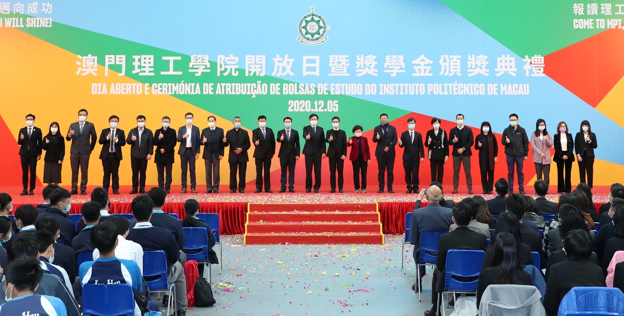 The Macao Polytechnic Institute Open Day and Scholarship Awards Ceremony was kicked off at 2:30pm at the MPI Multisport Pavilion. The opening ceremony was officiated by Prof. Marcus Im Sio Kei, President of MPI; Mr. Li Yongxian, Director of Department of Education and Youth Affairs of the Liaison Office of the Central People’s Government in the Macao Special Administrative Region; Mr. Sam Hio Tong, Head of Division of Resources and Student Welfare from the Higher Education Bureau; supervisors, principals and heads of 20 secondary schools in Macao; Ng Ka Kei, President of MPI’s Student Union; and Wong U Kei, Chairman of the Board of Directors of MPI Alumni Association. Other distinguished guests in attendance also included representatives from the Macao SAR government departments, scholarship funding organizations, representatives from the educational sector, alumni of MPI, and other social elites. At the ceremony, scholarship funding organizations presented scholarships to 600 outstanding students to recognize and encourage their performance and diligence while studying at MPI.