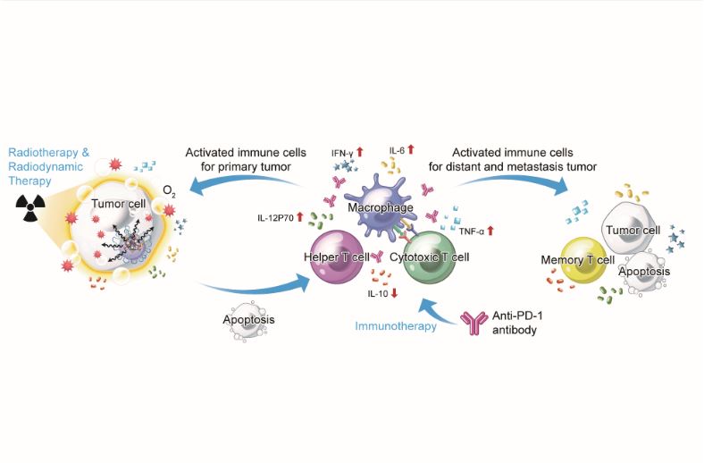 Radiotherapy is a traditional cancer treatment that has been proven to be effective in all types of cancer treatment. However, the toxicity of high doses of radiation to normal tissues and the inhibition of toxic substances during radiotherapy limit the effectiveness of radiotherapy. To overcome this limitation, the research team developed an oxygen-enriched X-ray nanoprocessor: Hb@Hf-Ce6 nanoparticles, which can be used in combination with PD-1 antibody to improve the therapeutic effects of radiotherapy and radiodynamic therapy and enhance anti-tumour immune response.