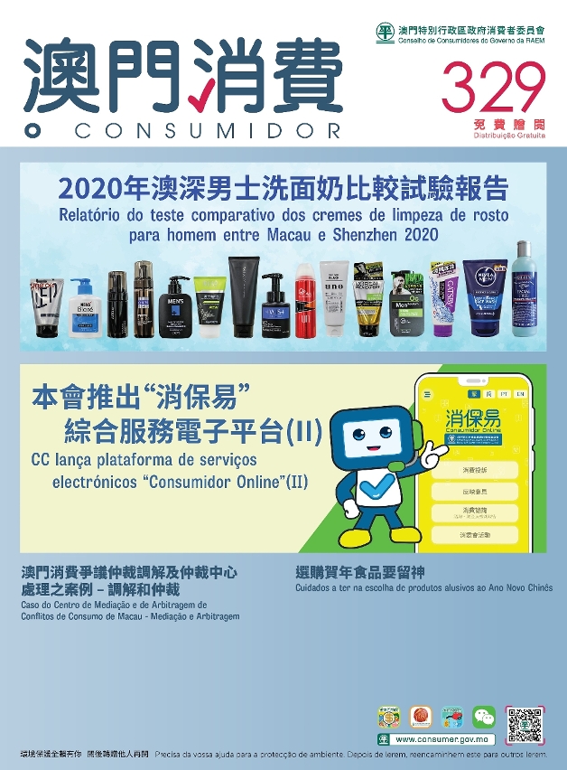 Consumers may access the magazine on the Council’s official website and WeChat official account. Consumer Report is also available free of charge at the Council (Av. Horta e Costa, N.º 26, Edf. Clementina Ho), and the service counter of the Council at Macao SAR Government Service Centre (Rua Nova da Areia Preta, Nº52), Public Information Centre at Vicky Plaza, libraries, and bookstores.