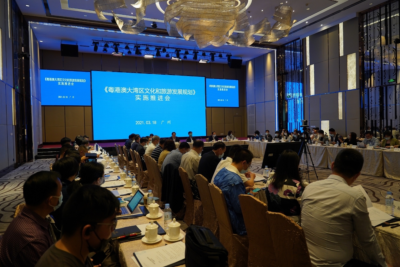 The meeting for fostering implementation of the “Culture and Tourism Development Plan for the Guangdong-Hong Kong-Macao Greater Bay Area” (referred to as the “Plan”) was held in Guangzhou on 18 March 2021. Convened in a hybrid online and offline format, the meeting gathered representatives of pertinent entities as follows: the National Development and Reform Commission; the Ministry of Culture and Tourism of the People’s Republic of China; Hong Kong and Macao Affairs Office of the State Council; related governmental departments of Guangdong Province, Hong Kong and Macao Special Administrative Regions; Liaison Office of the Central People's Government in the Hong Kong Special Administrative Region; Liaison Office of the Central People's Government in the Macao Special Administrative Region; cultural and tourism authorities of the nine Pearl River Delta cities, as well as experts and media representatives.