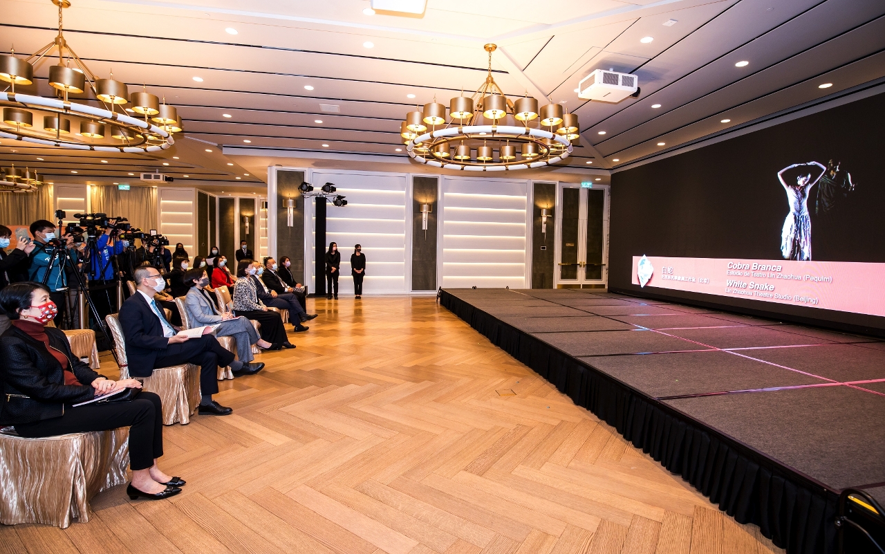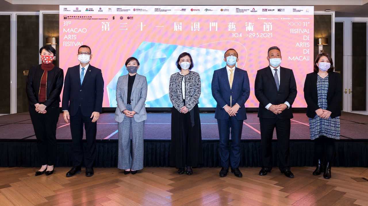 The presentation of the programme of the 31st MAF was held on 23 March, at 3:30pm, at Vista of MGM COTAI, and was broadcast live online by a number of media from the Greater Bay Area, with the presence of the President of the Cultural Affairs Bureau, Mok Ian Ian; the Head of Organizational Planning and Development Department of the Macao Government Tourism Office, Ma U Leng; the President, Chief Strategic and Financial Officer of MGM, Kenneth Feng; the Deputy General Manager of Bank of China Macau Branch, Chan Hio Peng; the Vice President of Air Macau Company Limited, Liao Hanxi; the Member of the Executive Committee of Teledifusão de Macau, S.A., Lei Pek Ieng; the Head of the Department of Performing Arts Development of the Cultural Affairs Bureau, Iu Wai Man; the Head of the Division of Performing Arts of the Cultural Affairs Bureau, Chou Wai In; and the representatives of the participating art groups.