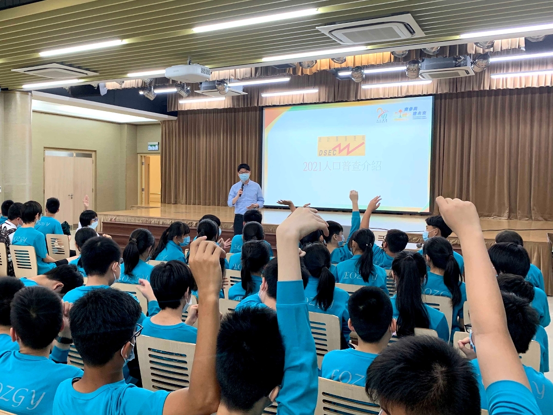 The Statistics and Census Service (DSEC) has been visiting local secondary schools to conduct the 2021 Population Census seminar between April and June, which aim to raise students’ awareness and understanding of the 2021 Population Census.