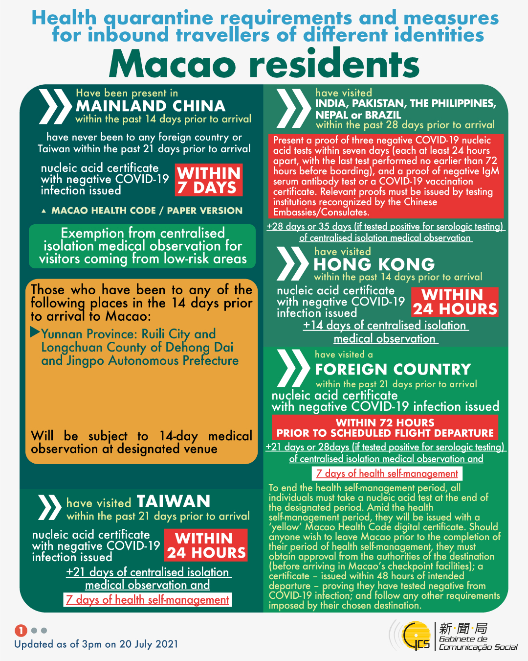 [infographic] 20 July 2021 health quarantine requirements and measures for inbound travellers