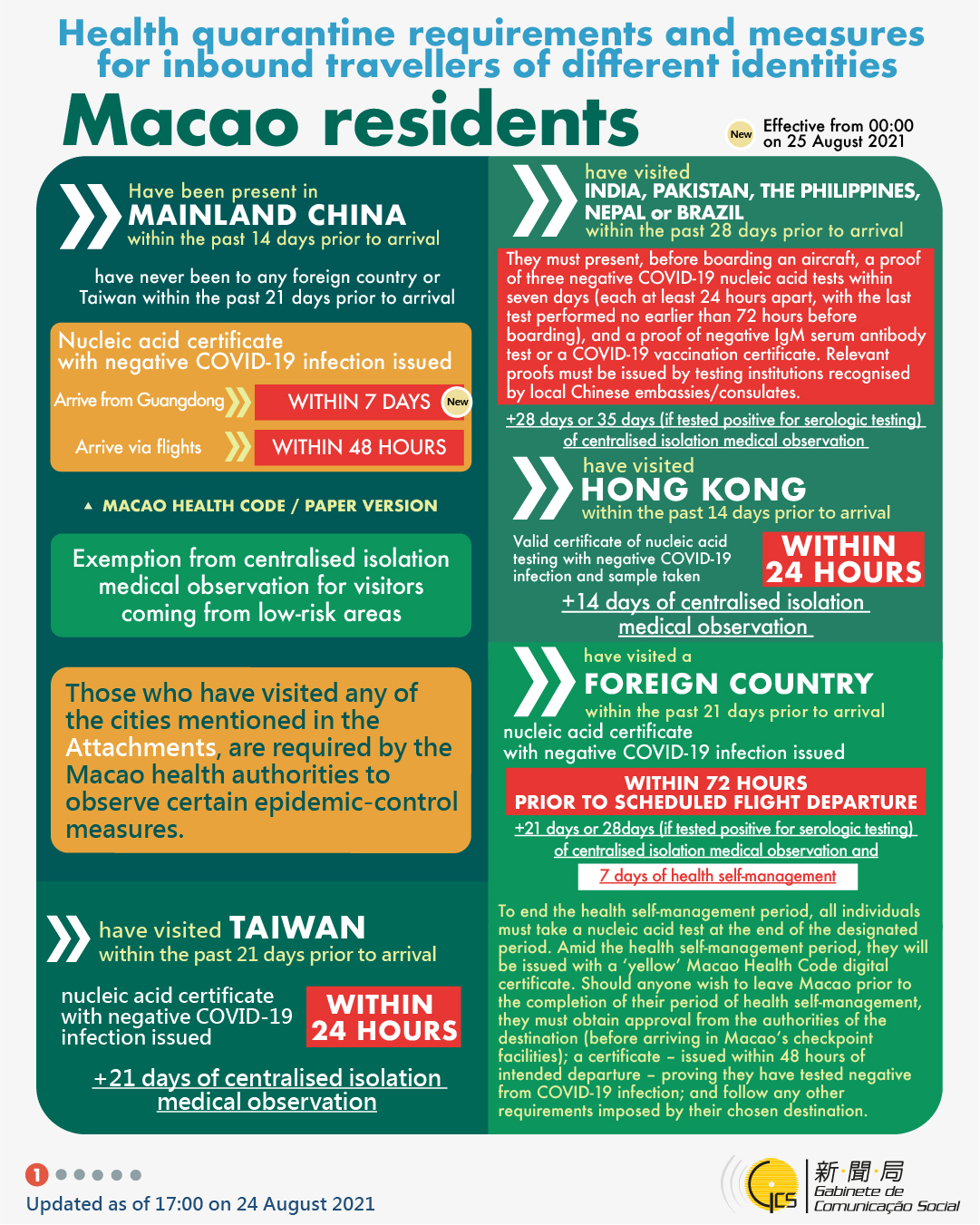 [infographic] 24 August 2021 health quarantine requirements and measures for inbound travellers