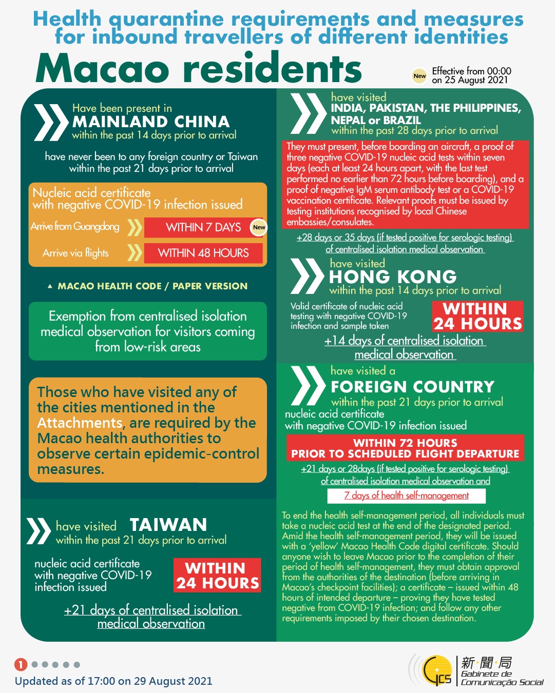 [infographic] 29 August 2021 health quarantine requirements and measures for inbound travellers