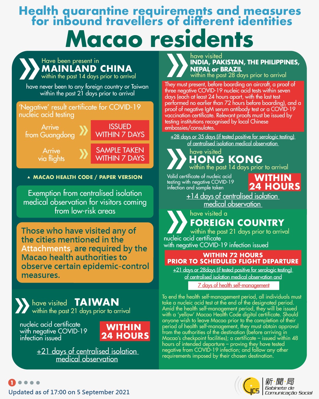 [infographic] 5 September 2021 health quarantine requirements and measures for inbound travellers