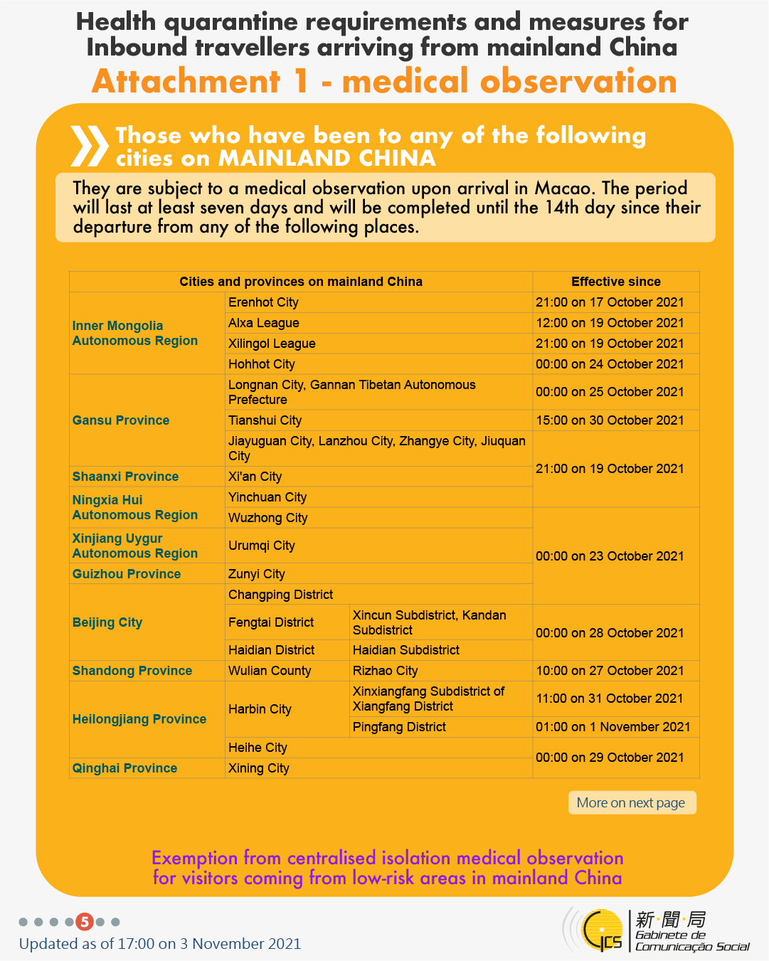 [infographic] 3 November 2021 health quarantine requirements and measures for inbound travellers