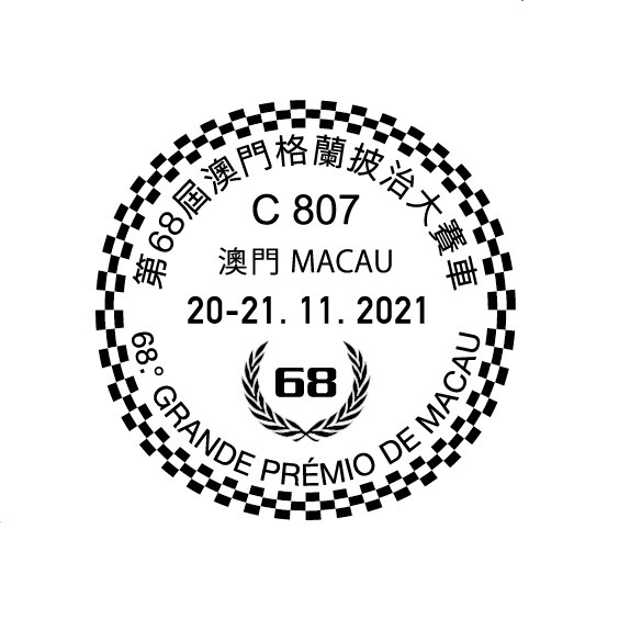 To celebrate the 68th Macao Grand Prix, Macao Post and Telecommunications Bureau announces that a Temporary Post Counter will be set up behind the Lisboa Stand (Restriction area for ticket entry) and at our Philatelic Shop of General Post Office during 20th and 21st November 2021, providing the commemorative postmark cancellation service for the “68th Macao Grand Prix”. Opening hours are as follows: