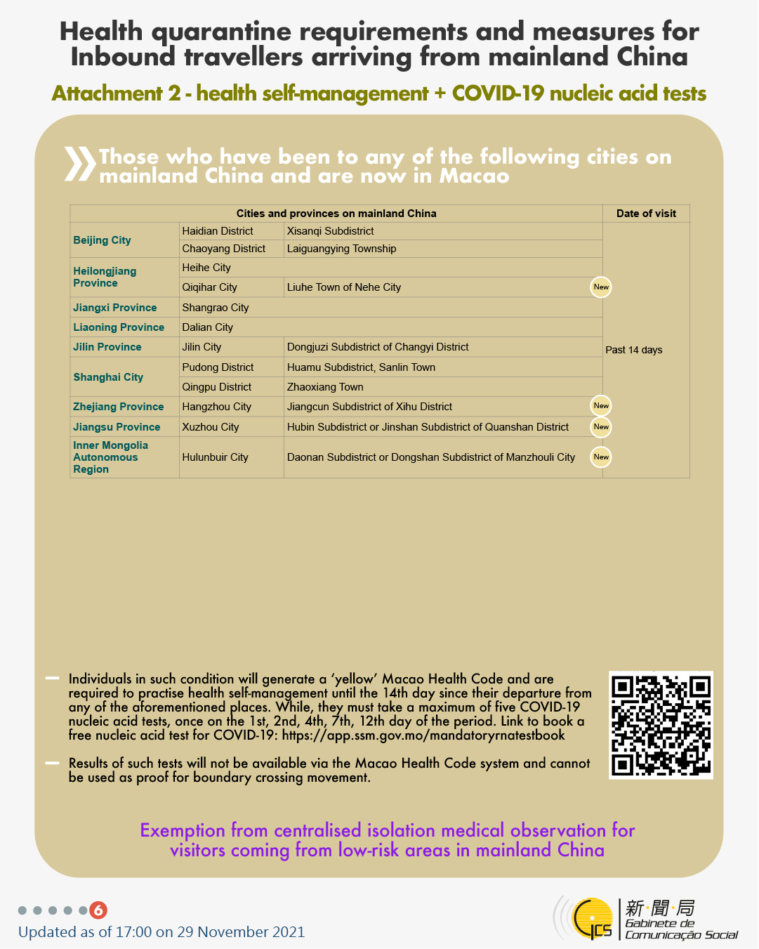 [infographic] 29 November 2021 health quarantine requirements and measures for inbound travellers of different identities.