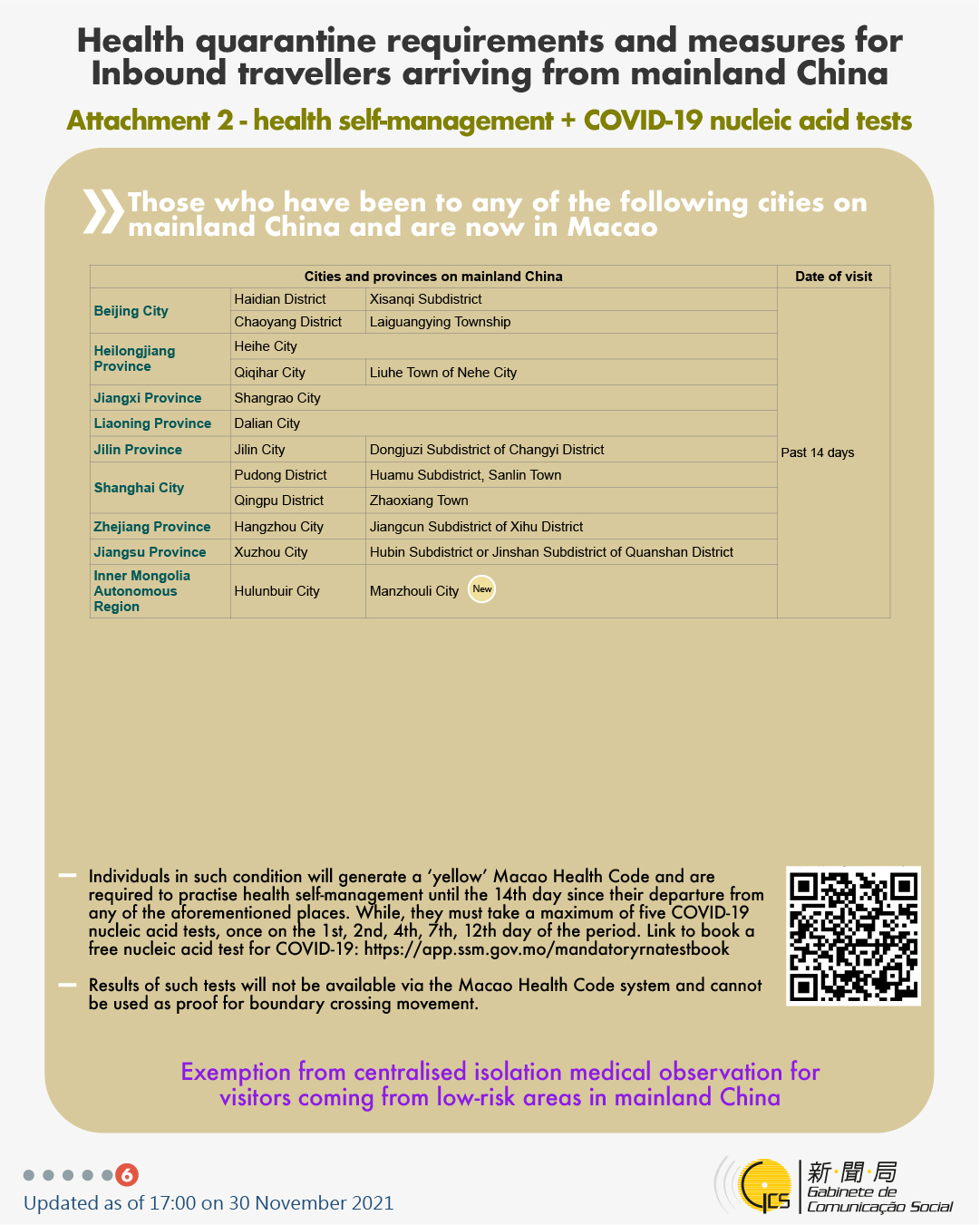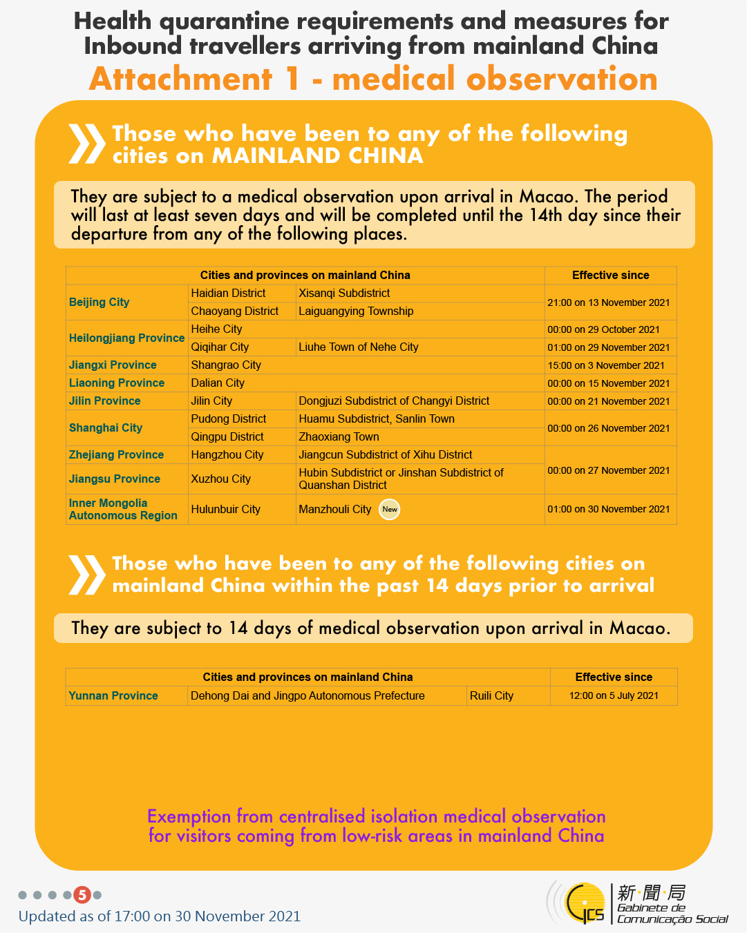 [infographic] 30 November 2021 health quarantine requirements and measures for inbound travellers of different identities.